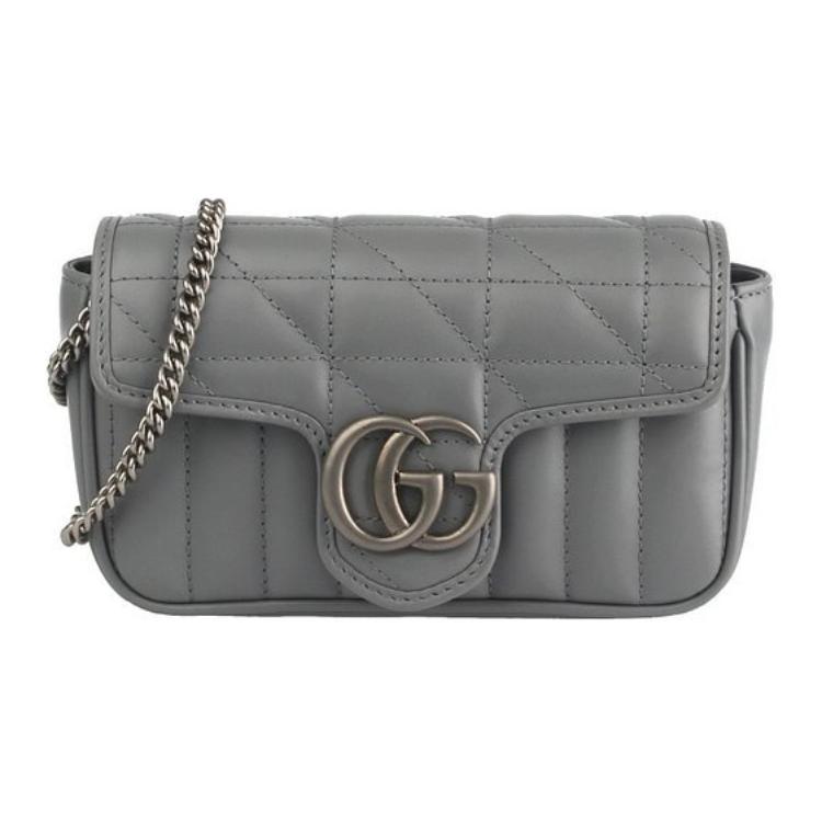 GUCCI Marmont Quilted Leather Shoulder Bag, Crossbody Bag Extra Mini Women"s Gray