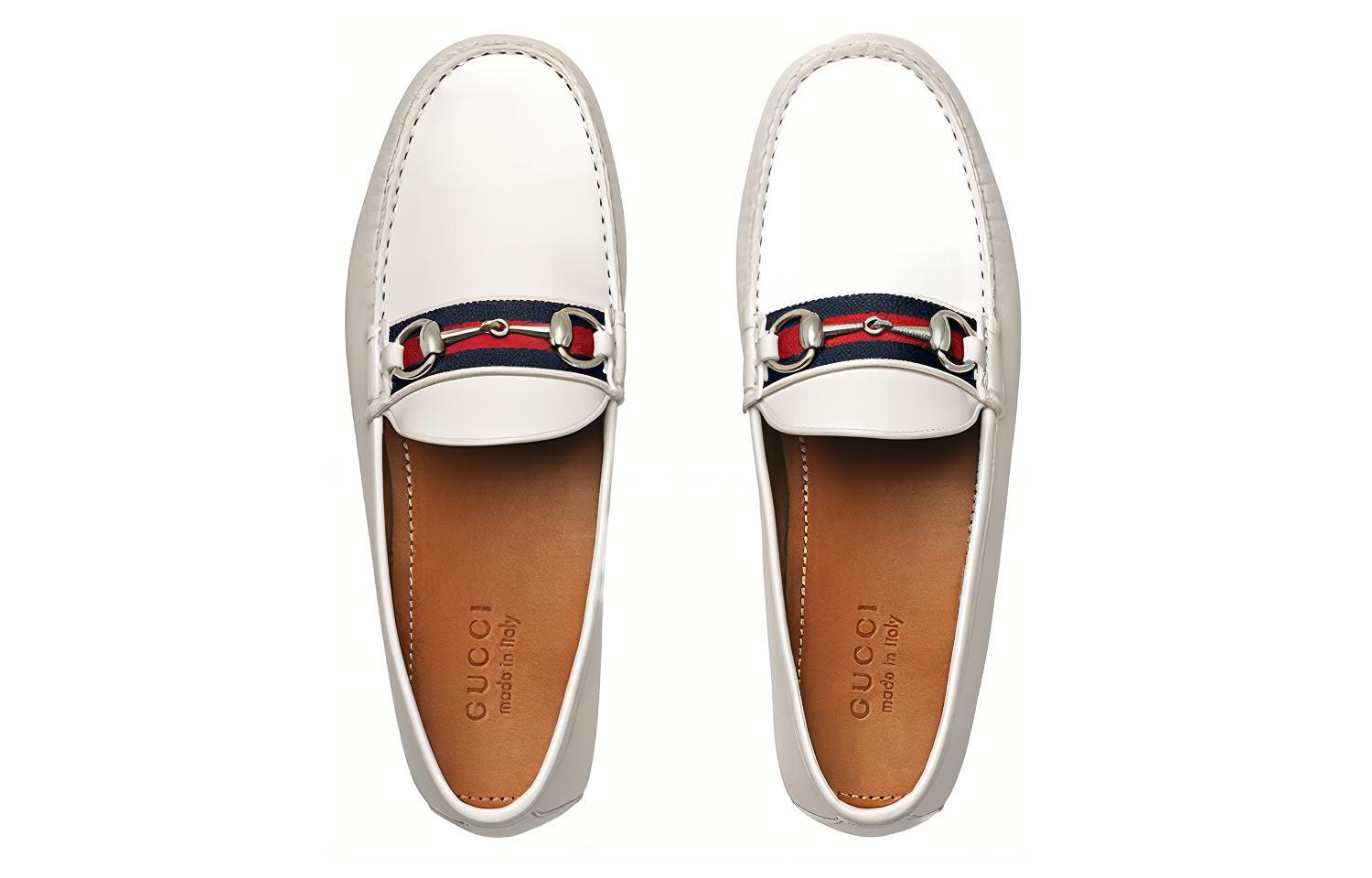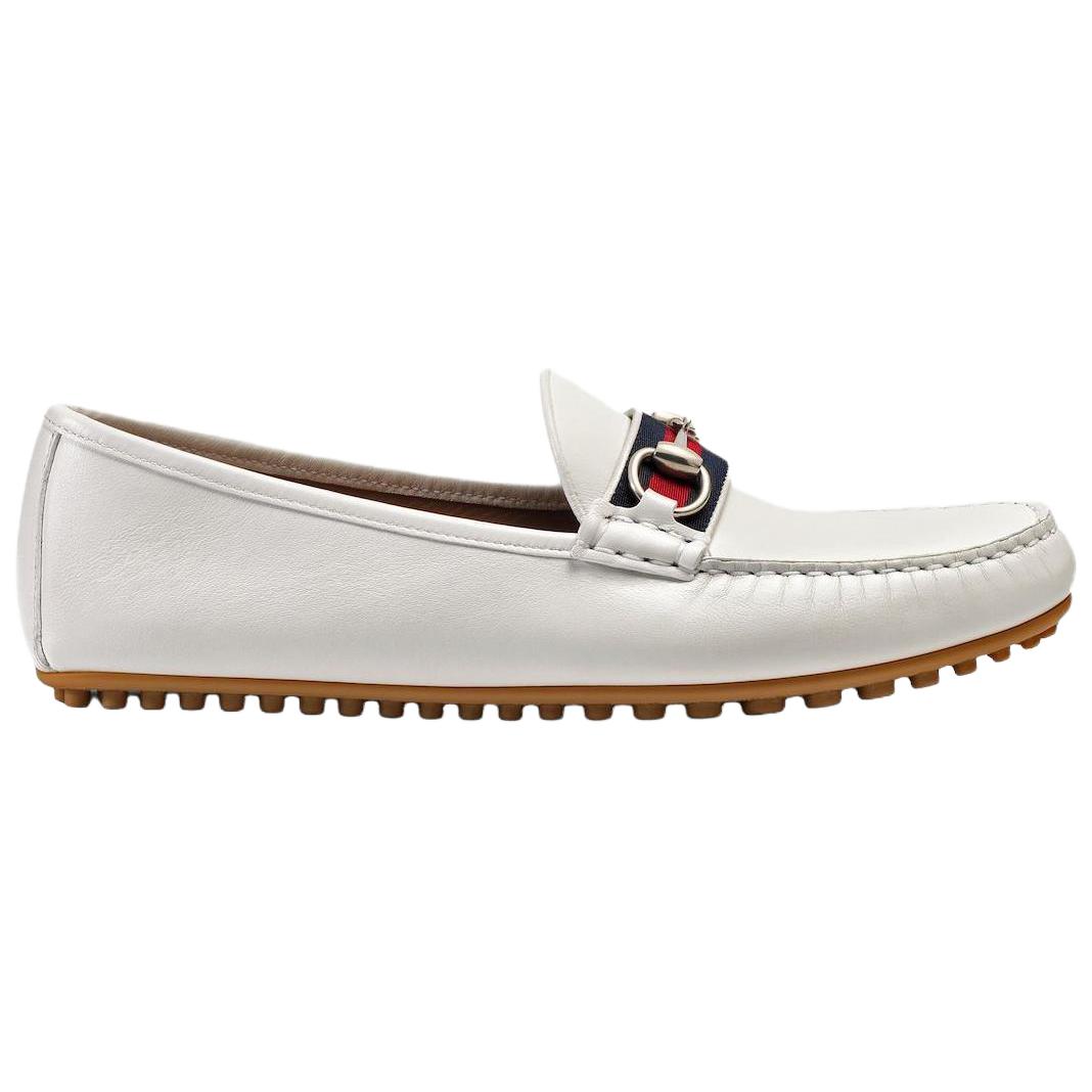 GUCCI Stripe Leather Flat Men White