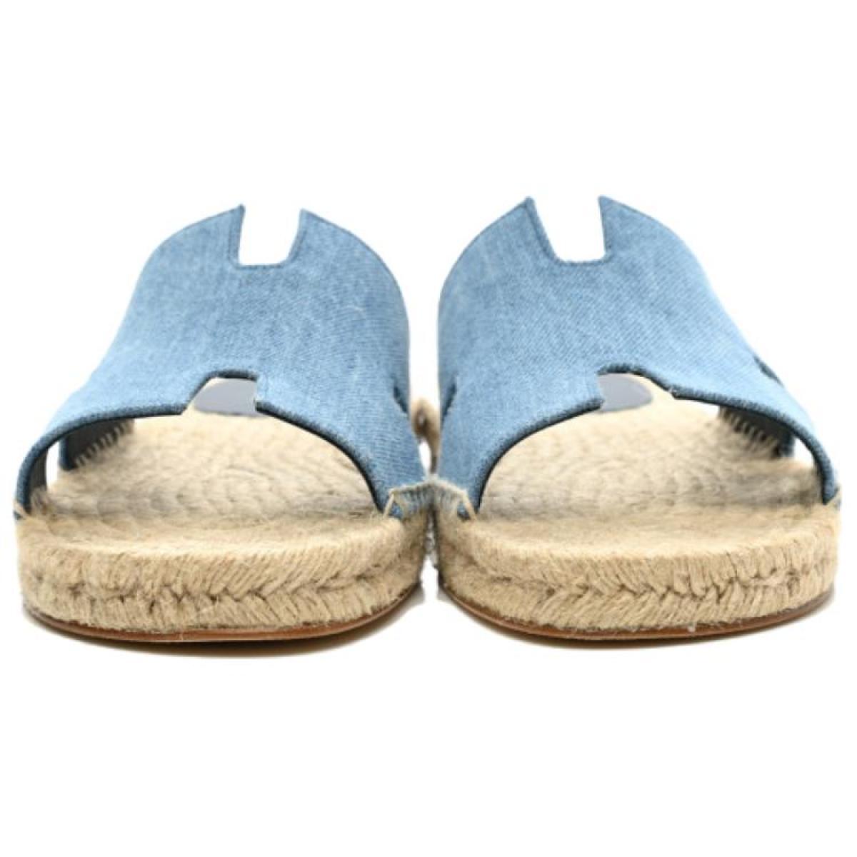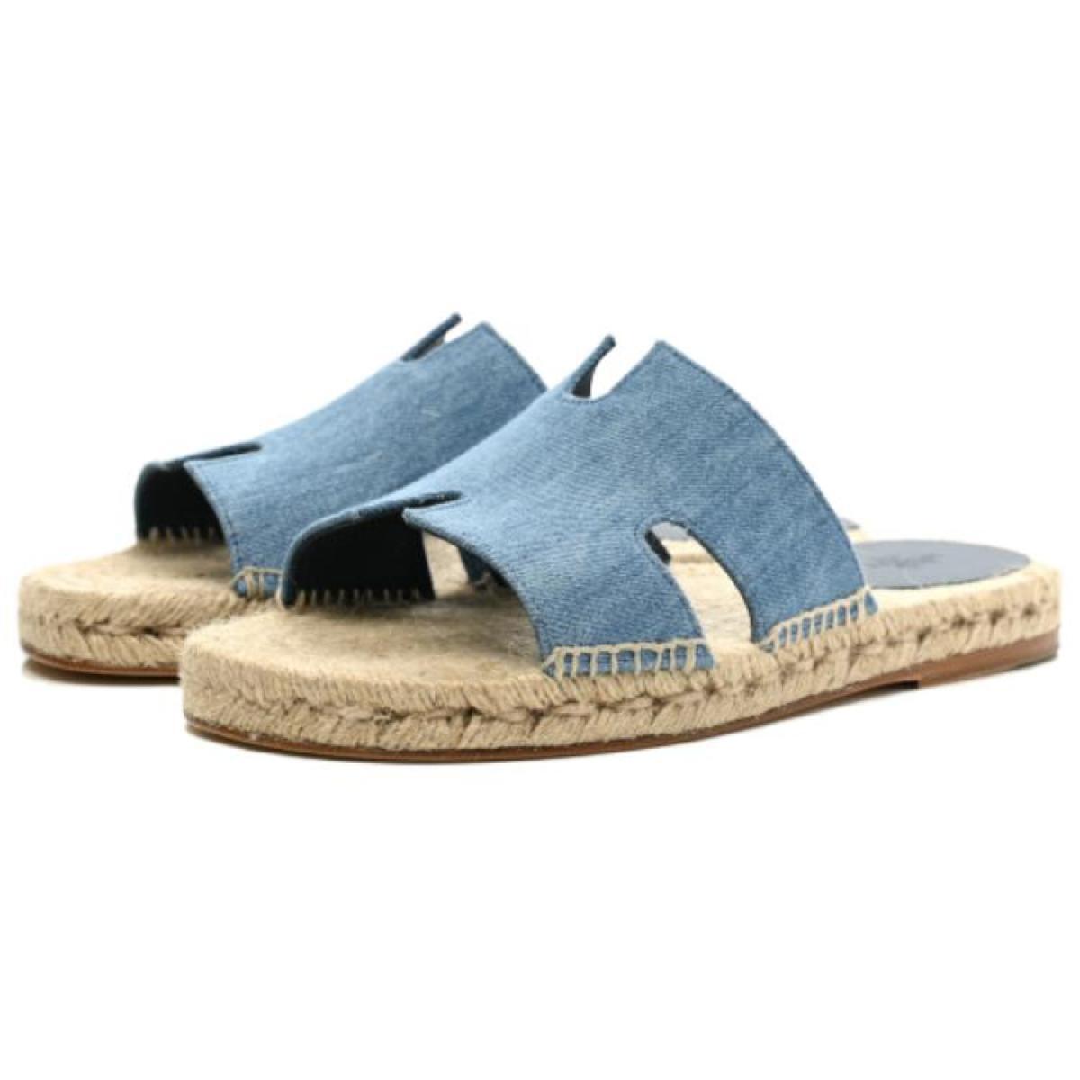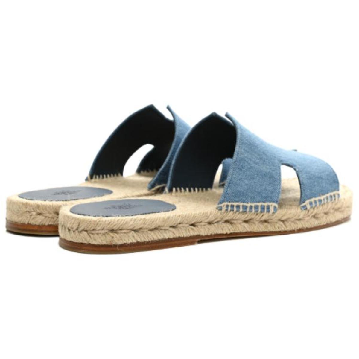 Hermes Antigua Straw Shoes Slippers Fashion Sandals Men's Denim Blue, H221833ZH CB