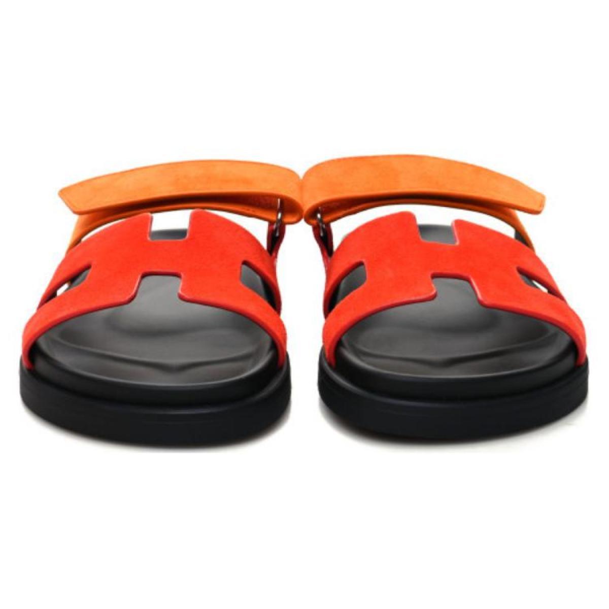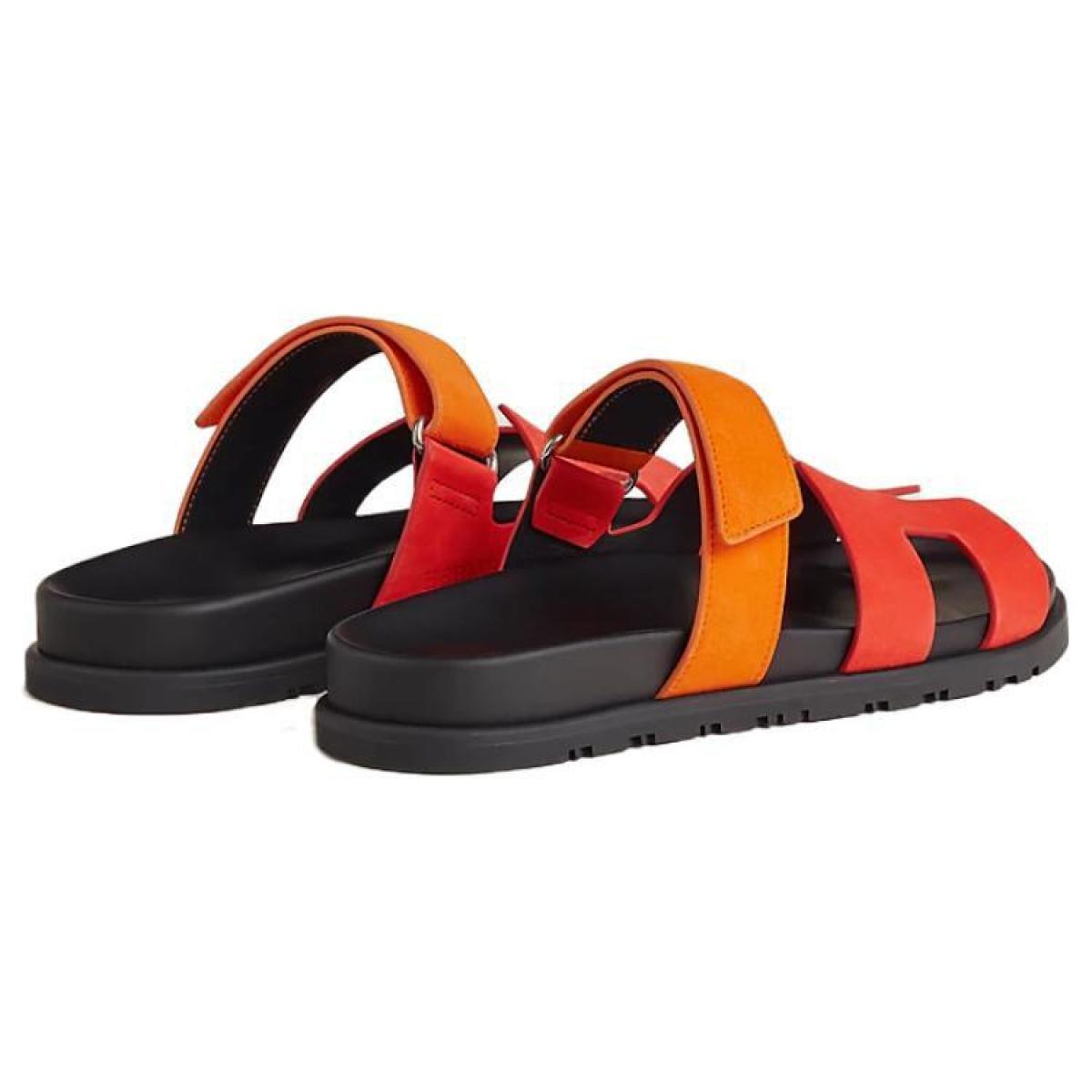 Hermes Chypre leather comfortable and lightweight one-word slippers women's orange red, H222297Z LS