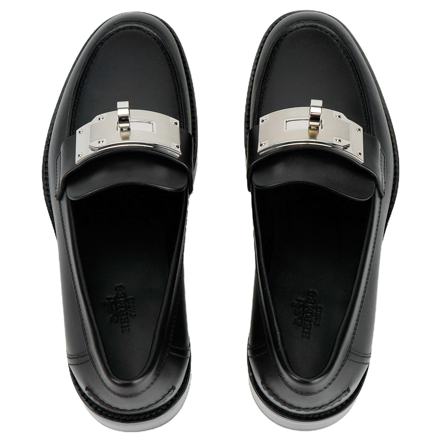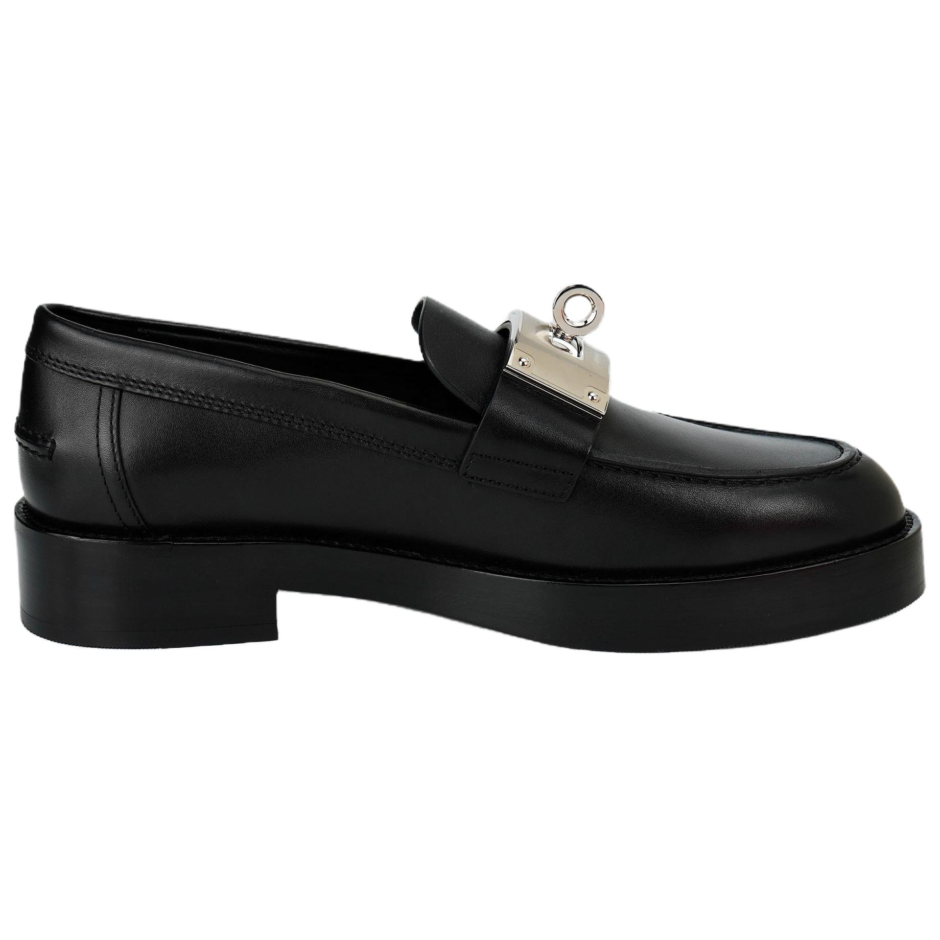 HERMES Hot Loafer Noir Calfskin Leather