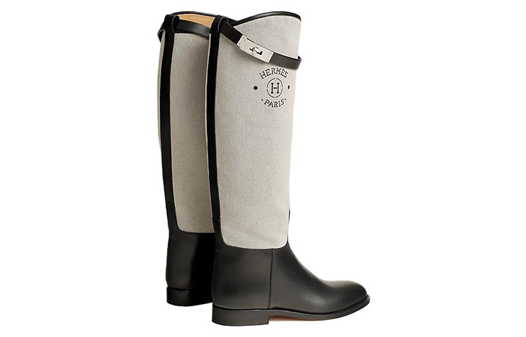 HERMES Jumping Leather Knee high Boots Women"s Black Gray