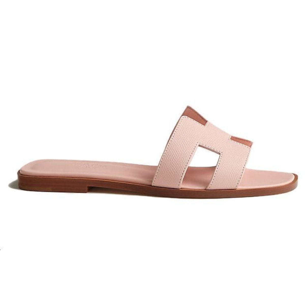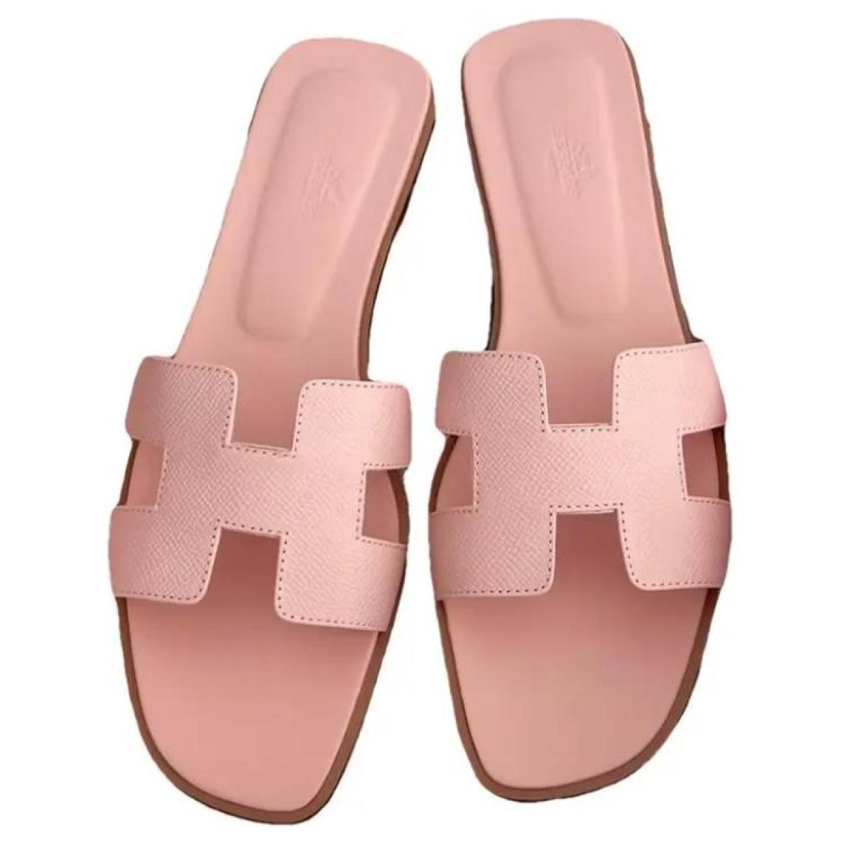 Hermes Oran leather open-toed round toe slippers women's pink, H202272Z VR