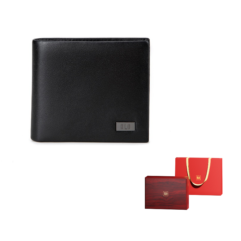 HLA Premium Sophisticated Wooden Box Cow Leather Exquisite Leather Versatile Folding Wallet Card Holder, Wallet Regular