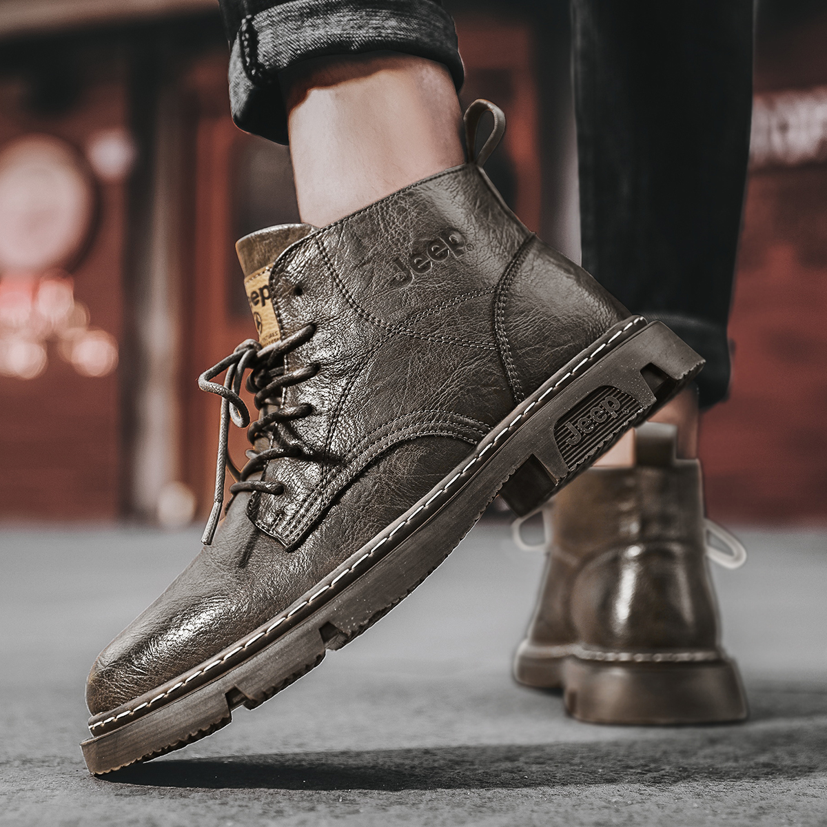 Jeep Microfiber Leather Short Combat Boots Men"s Khaki