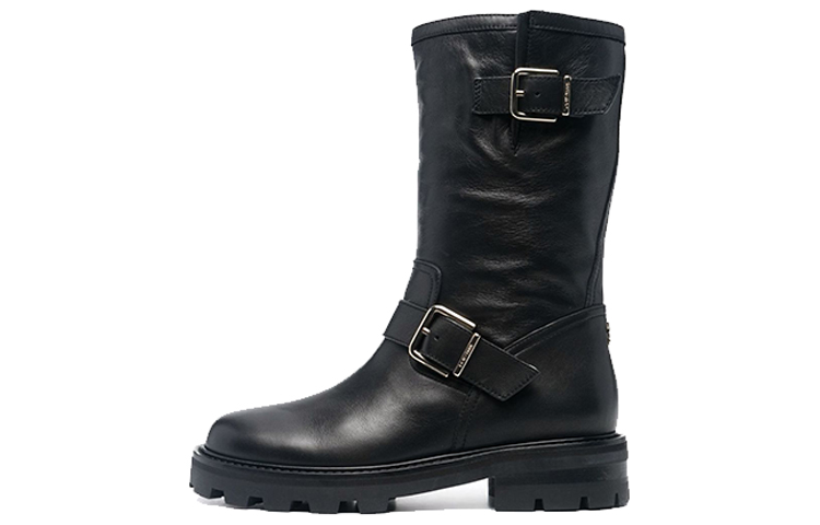 Jimmy Choo Biker II Cow Leather Round Tip Boots Women"s Black