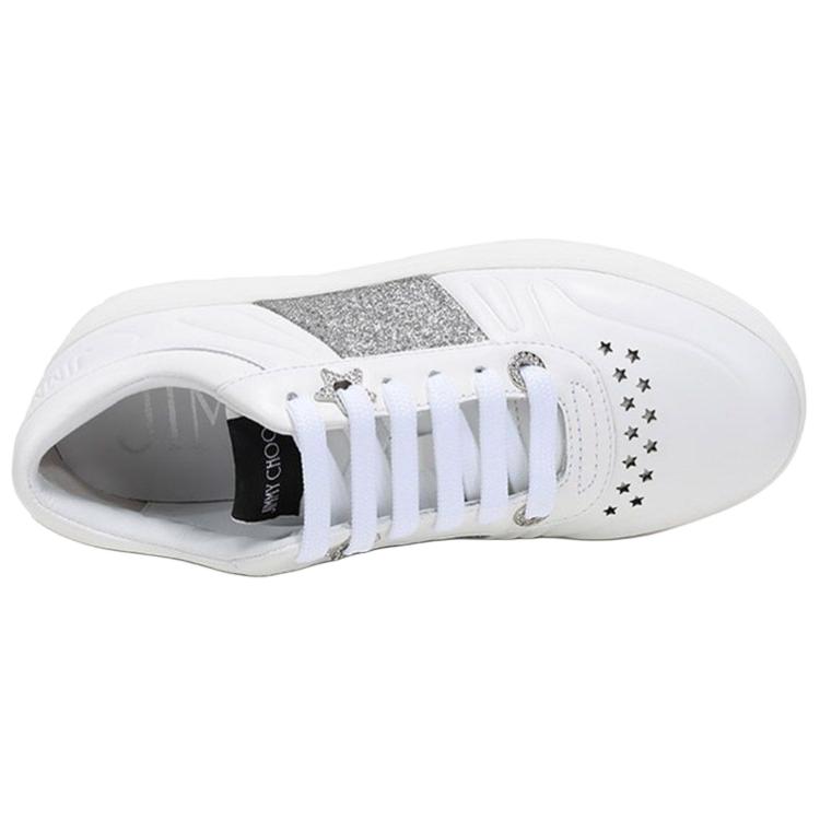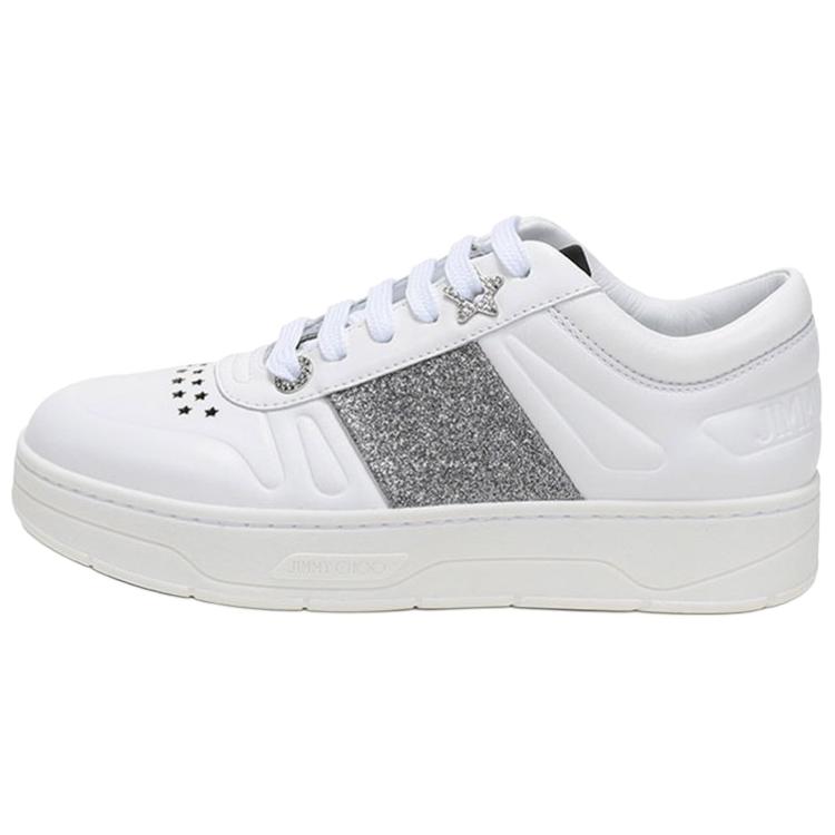 Jimmy Choo Hawaii Top Grain Cow Leather Low top Stylish Skateboarding Shoes Women"s White Silver