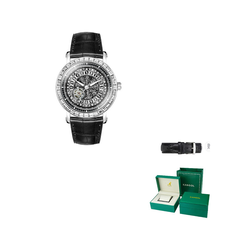 KANGOL Automatic Mechanical Movement Genuine Leather Strap Watch Men"s Watches Skeleton Dial