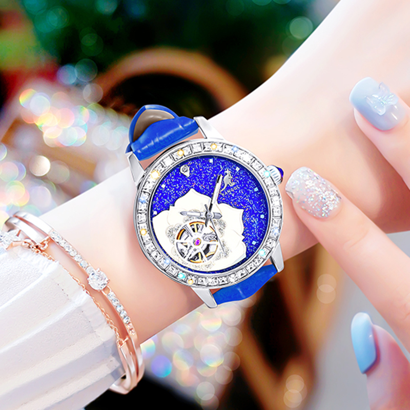 KANGOL Automatic Mechanical Movement Genuine Leather Strap Watch Women"s Watch Blue Dial