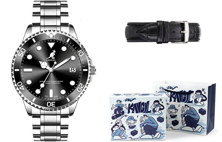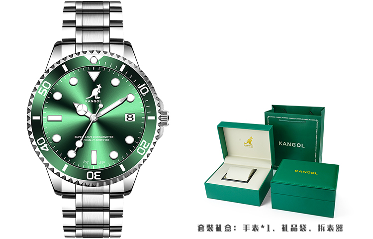 KANGOL Kangaroo Diver Collection Quartz Movement Stainless Steel Watchband Watch Men"s Watches Green Dial