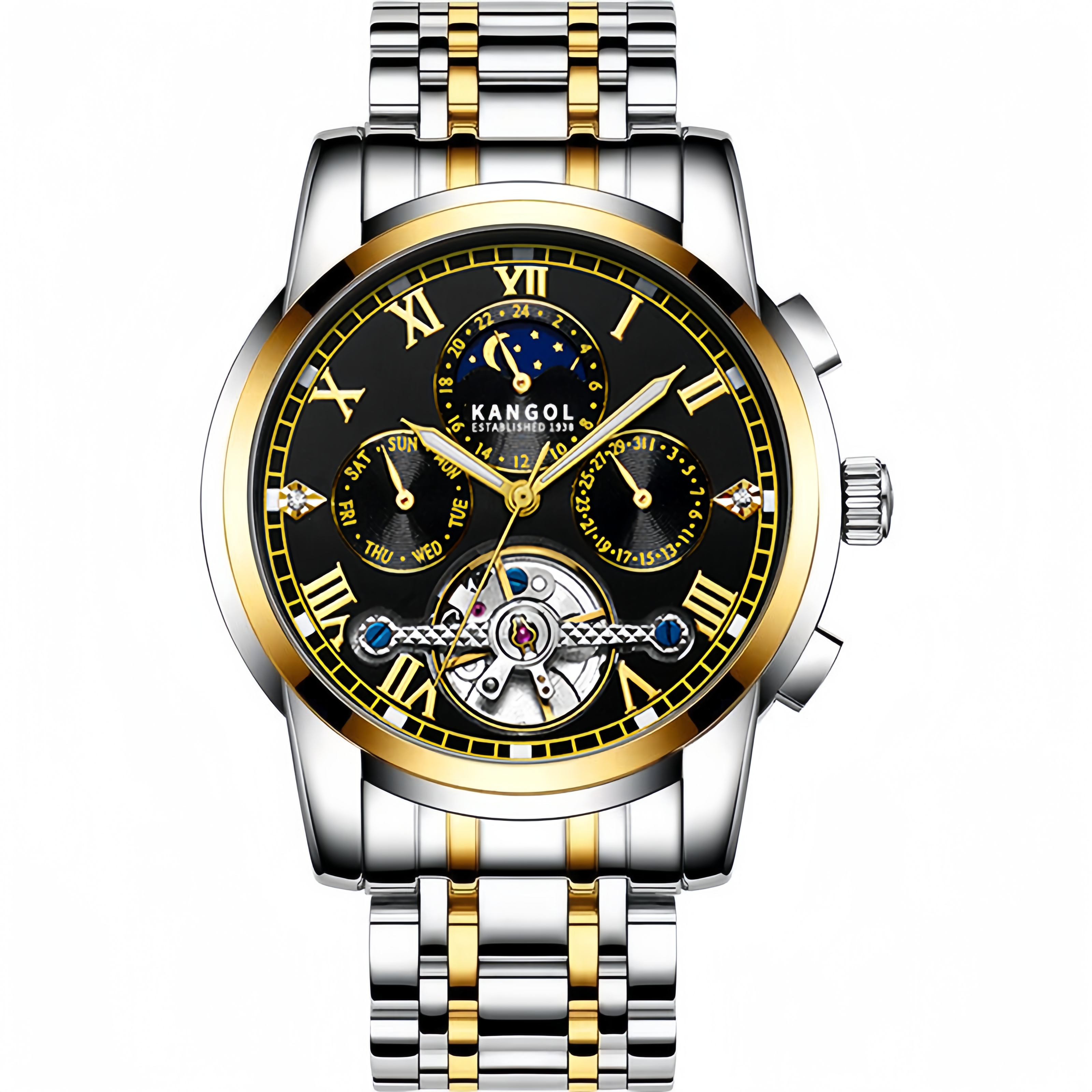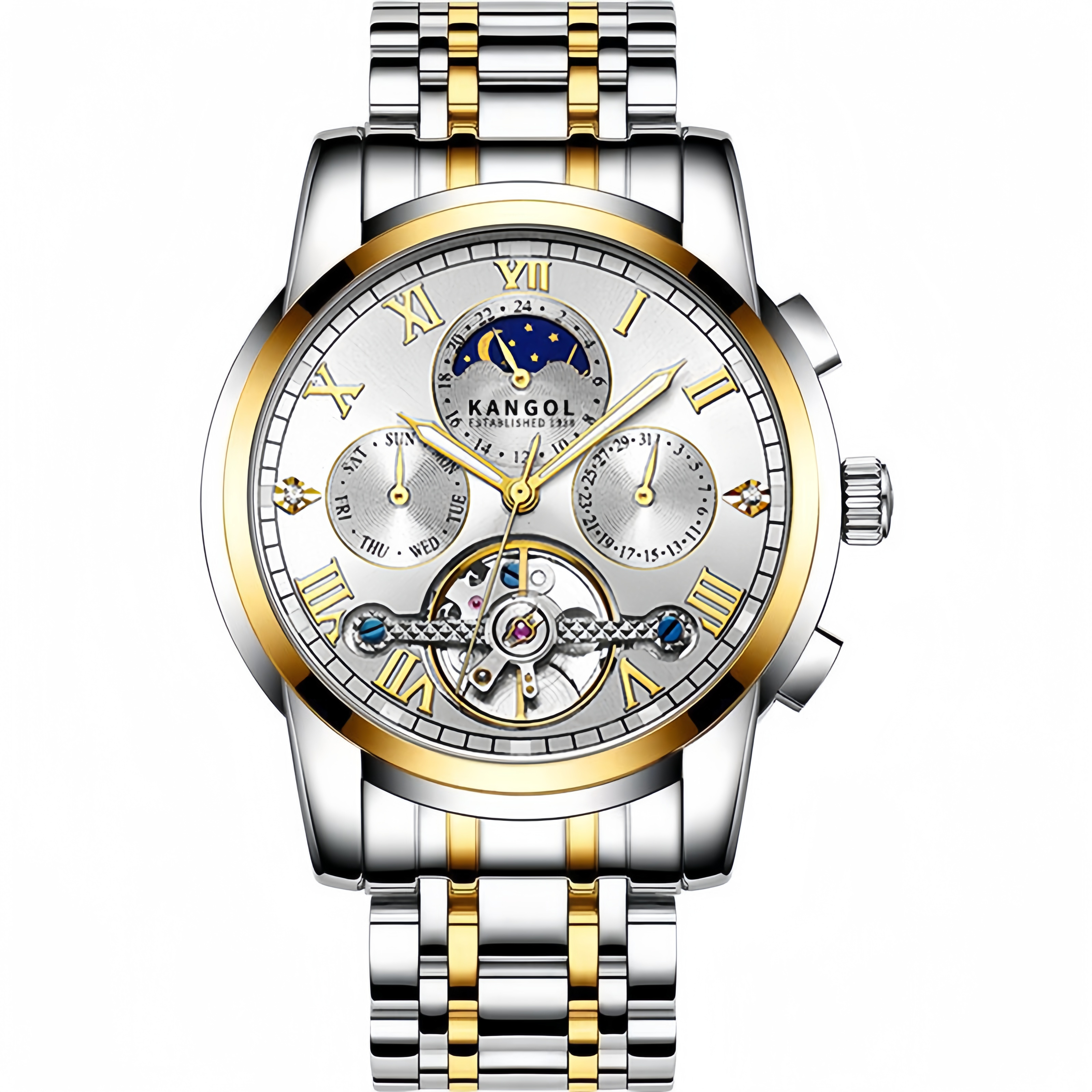 KANGOL Mechanical Movement Stainless Steel Watchband Watch Men"s Watches Skeleton Dial 30m Water Resistance