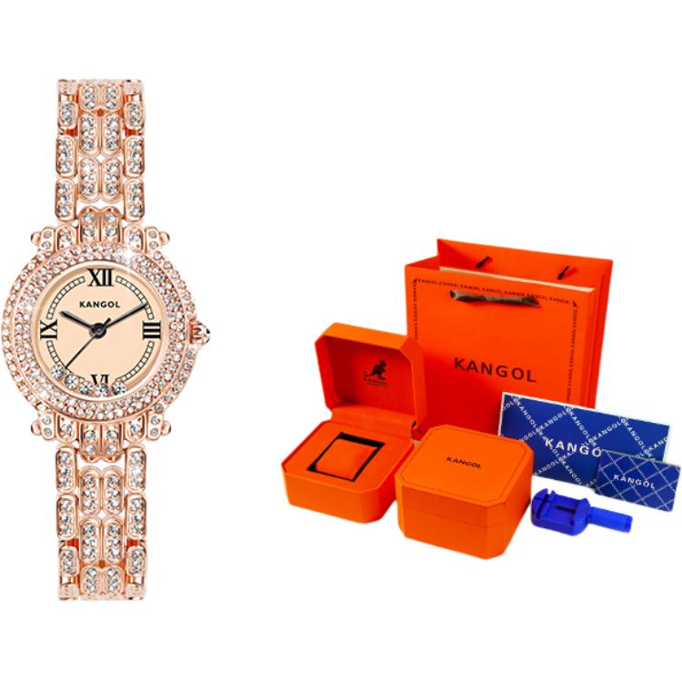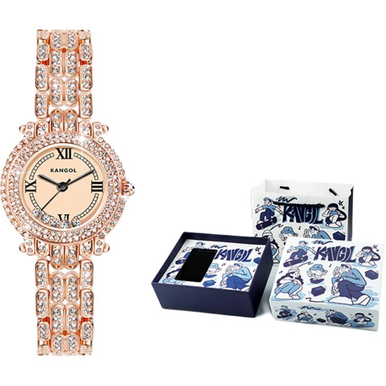 KANGOL Turn Of Fortune Baby"s Breath Quartz Movement Metal Strap Watch Women"s Watch White Dial