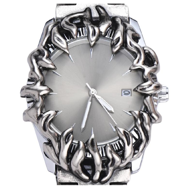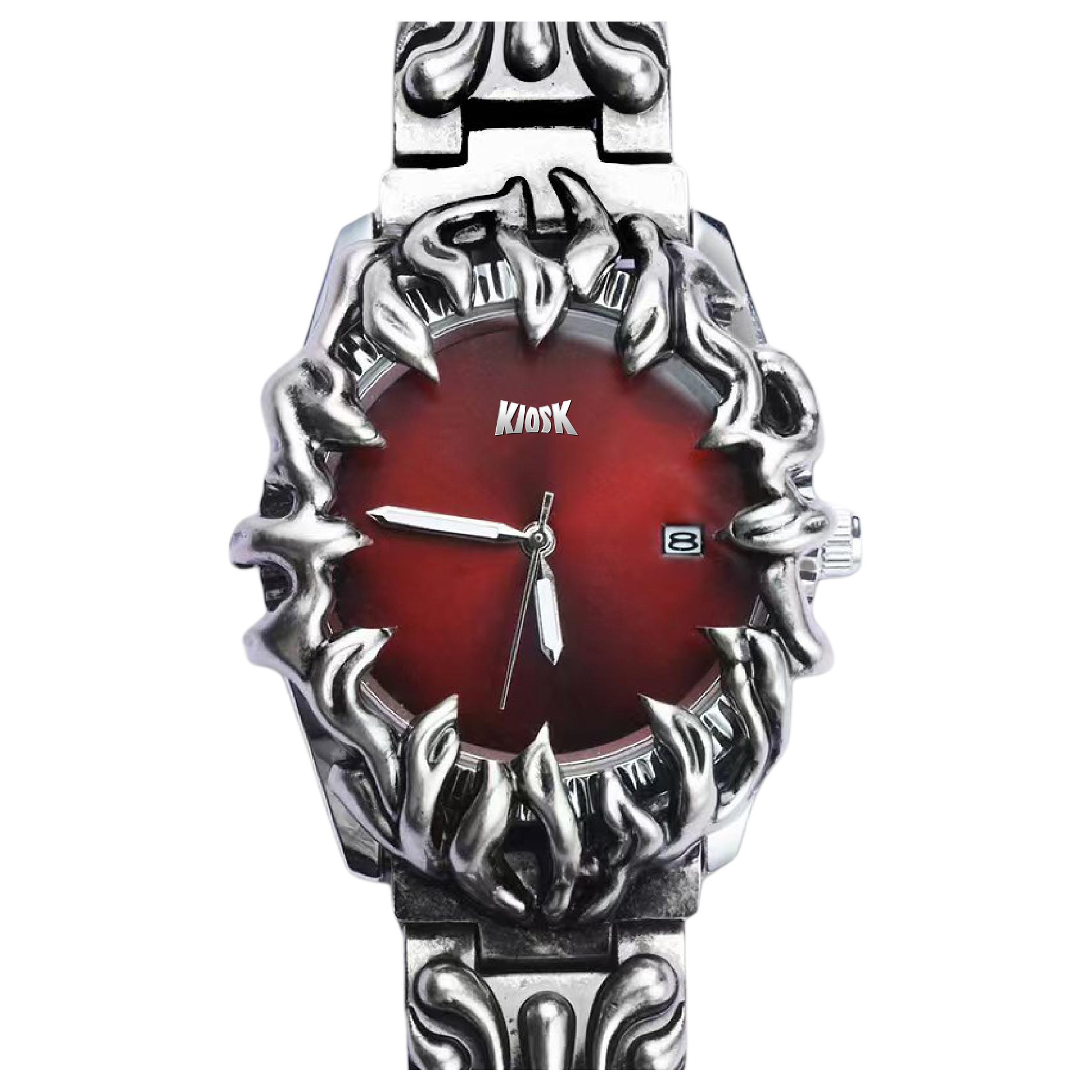 KIOSK Y2K Trendy Fashion Retro Wrist Watch Silver Luxury American Fossil Quartz Movement Stainless Steel Watchband