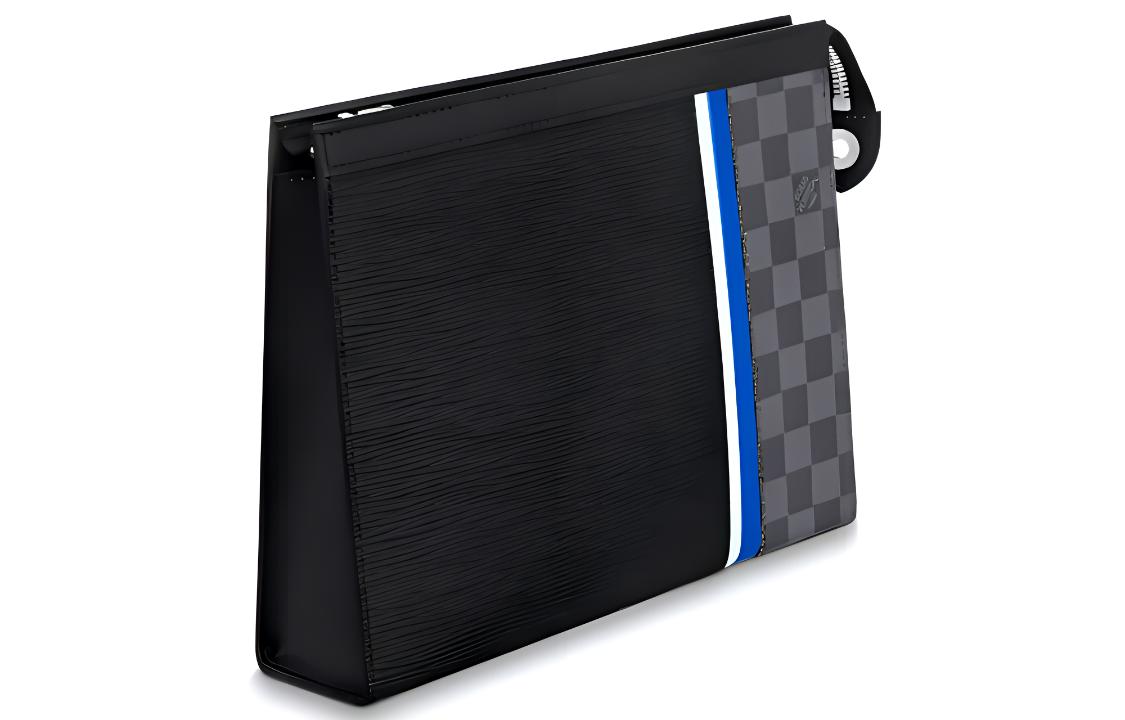 LOUIS VUITTON Leather Handheld Toiletry Bag Medium Men"s Black