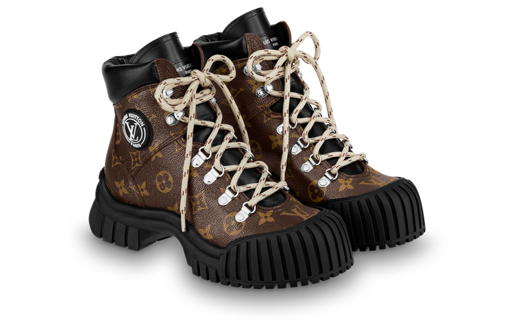 LOUIS VUITTON Ruby Leather Combat Boots Women"s Brown