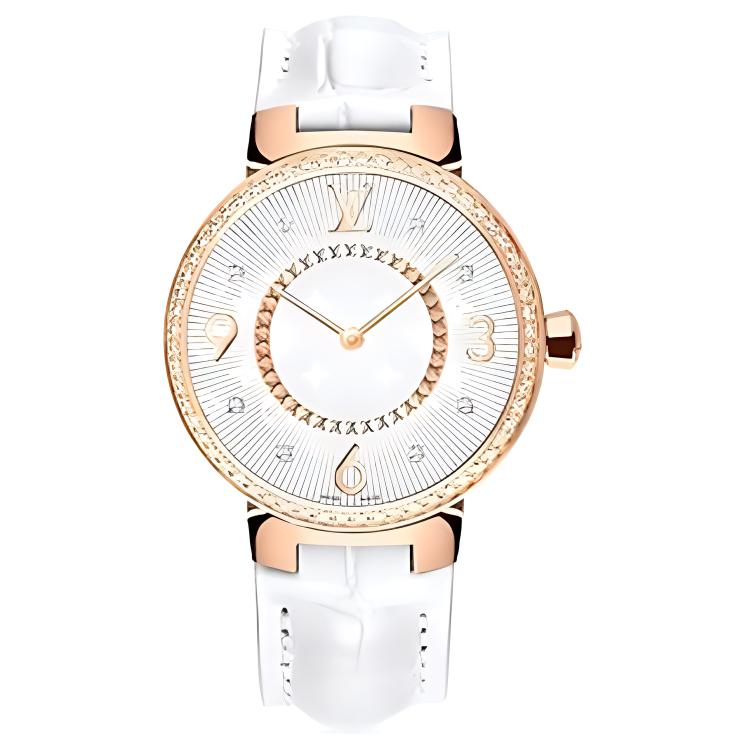 LOUIS VUITTON Wrist Watch Automatic Mechanical Movement Crocodile Leather Strap 28mm Silver Dial Women"s Watch