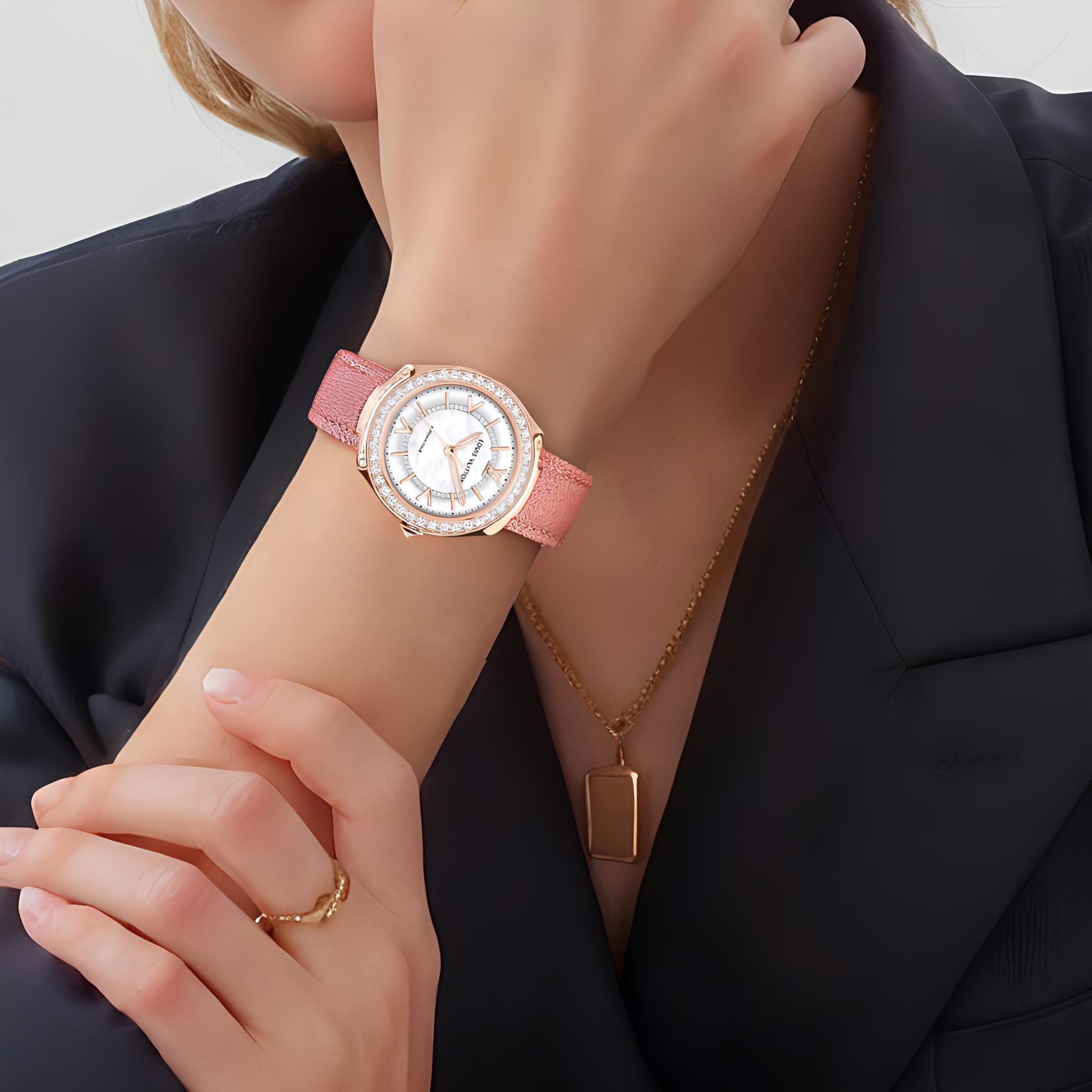 LOUIS VUITTON Wrist Watch Quartz Movement Cow Leather Strap 36mm White Dial Women"s Watch 50m Water Resistant