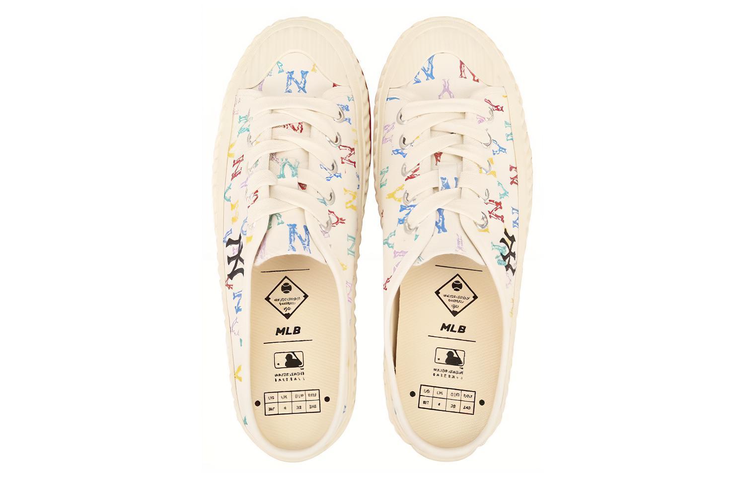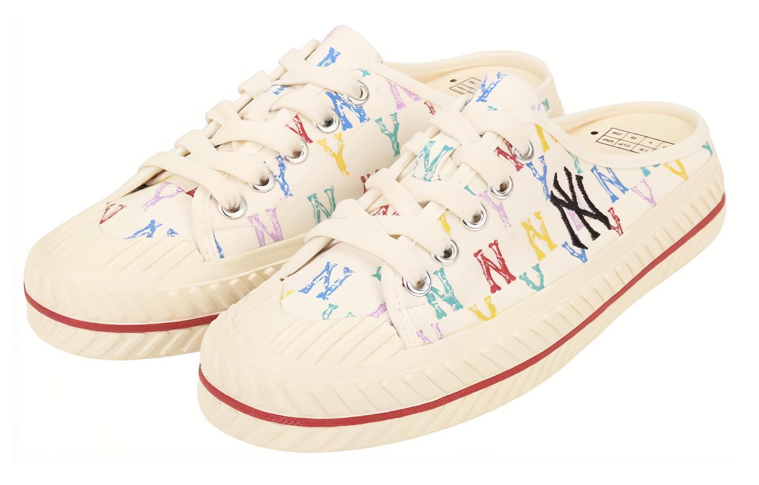 MLB Playball Mule Monogram Mules Slip Resistant Abrasion Resistant Low top Canvas Shoes Unisex White