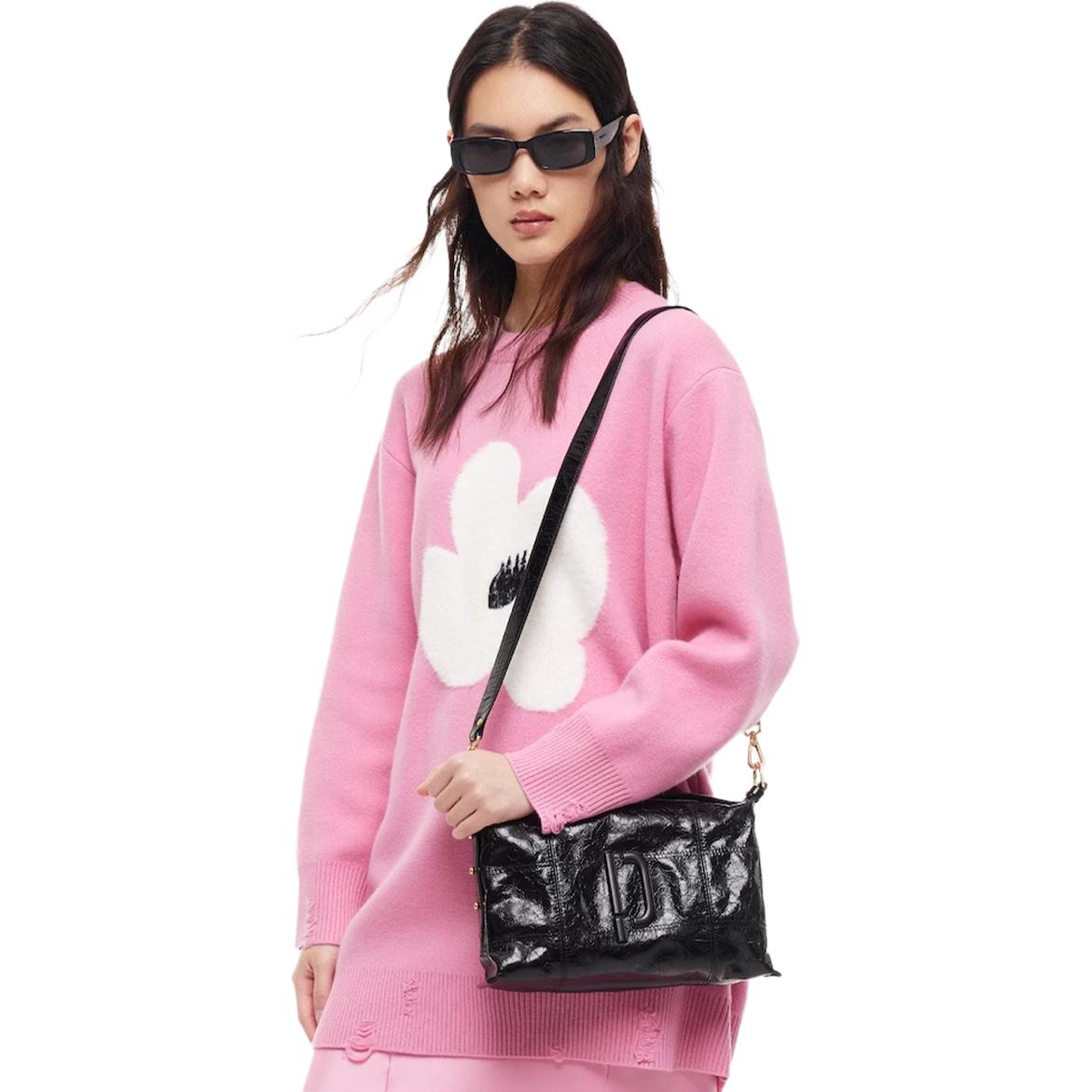 PECO Cow Leather Niche Versatile Bag Shoulder Bag, Crossbody Bag Small Unisex Black/Pink/Silver/Yellow