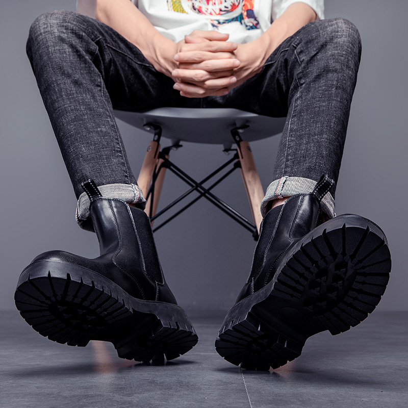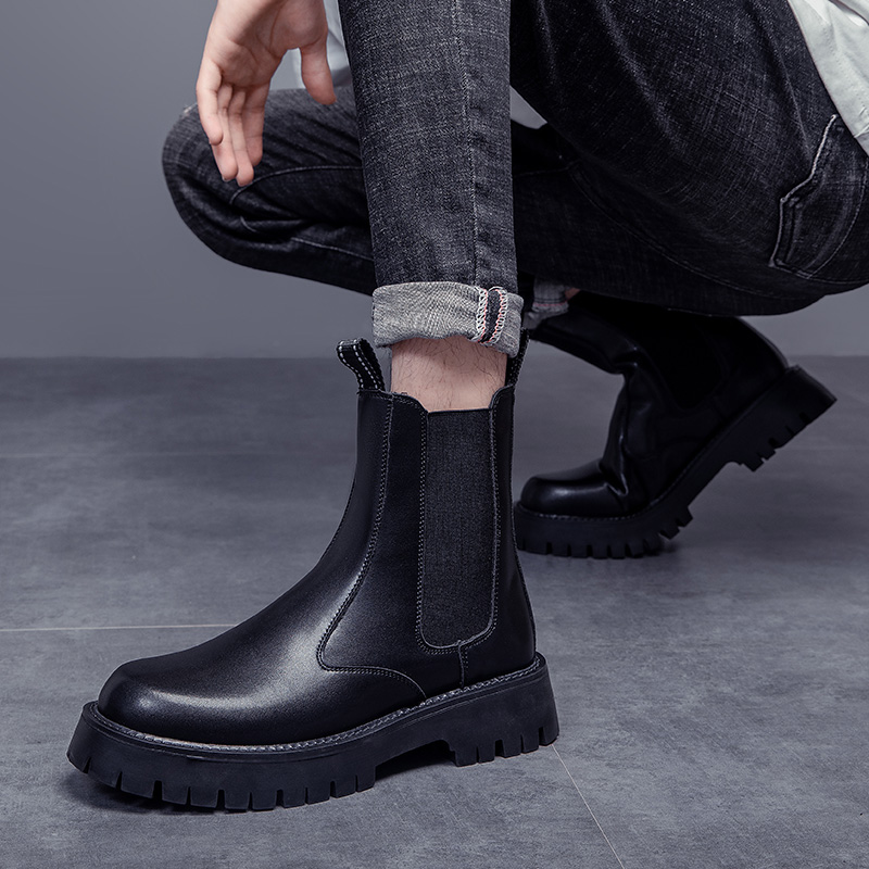 PLO CART Cow Split Leather Crew Chelsea Boots Men"s Black