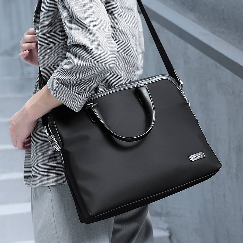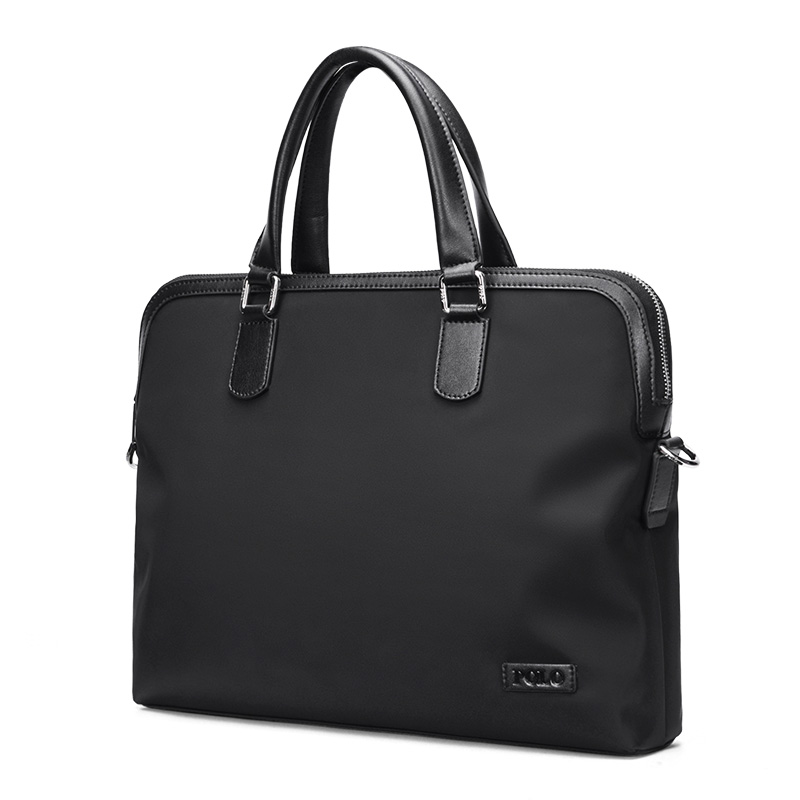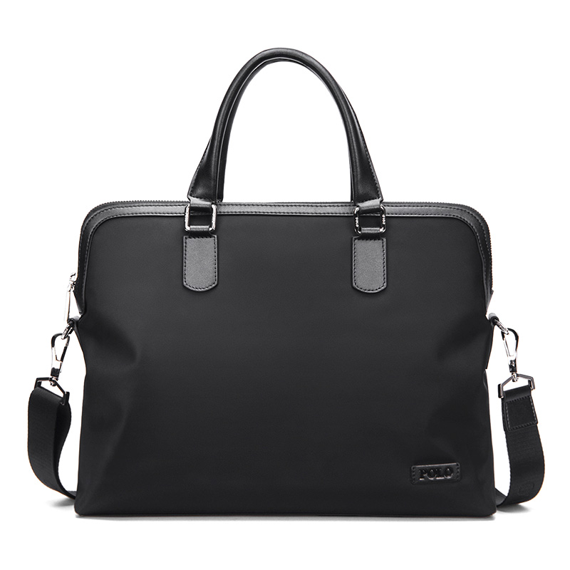 POLO Textile, Synthetic Leather Shoulder Bag, Men"s Handbag, Briefcase Large Men"s Black