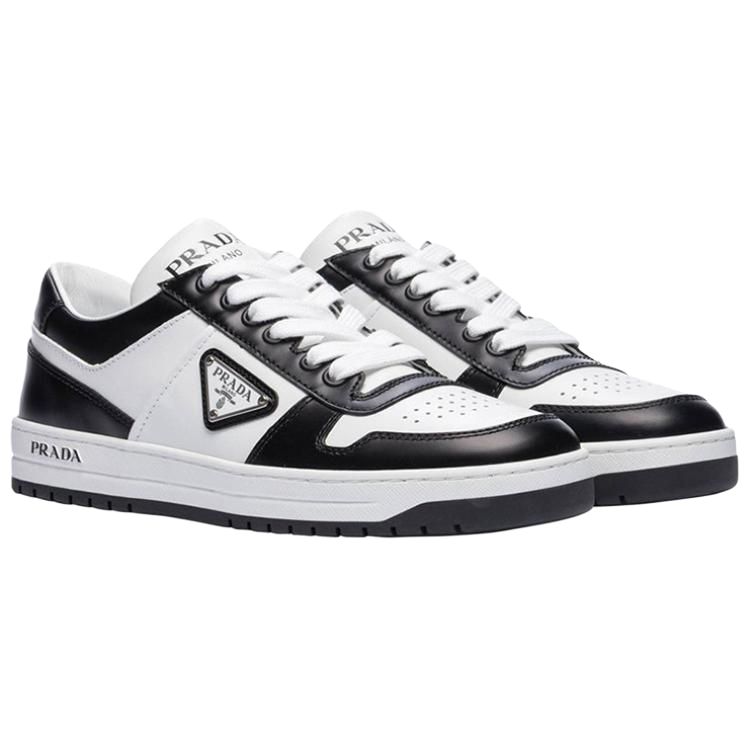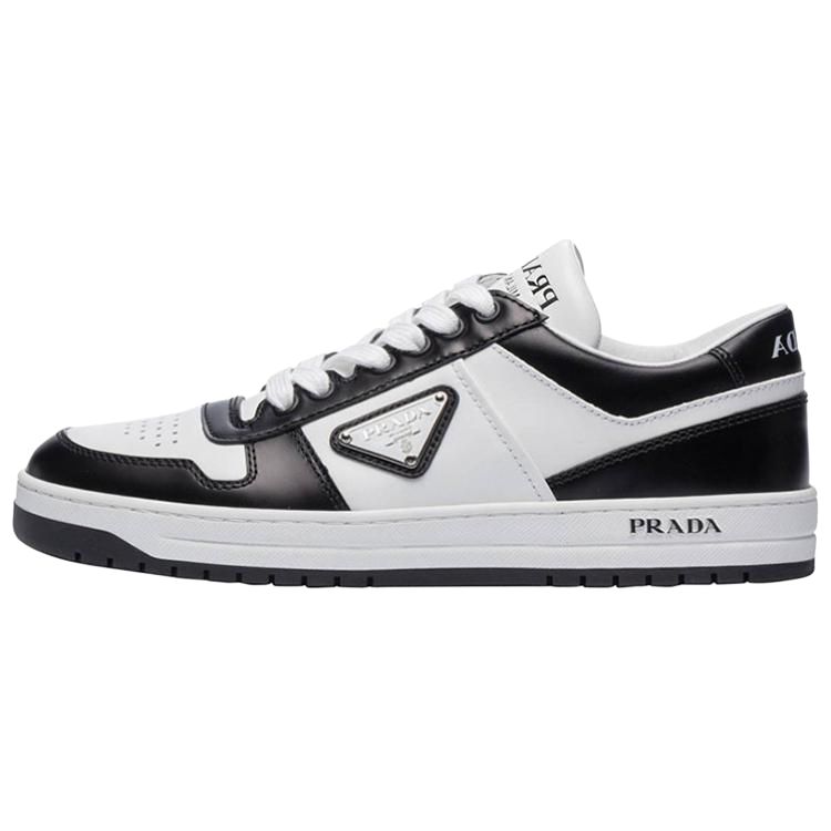 PRADA Downtown Leather Sneakers "White Black " Women"s