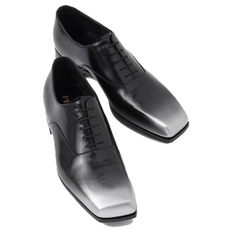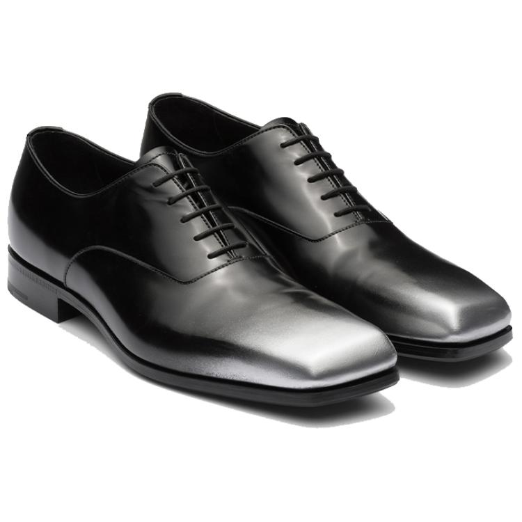 PRADA Leather Casual Leather Shoes Men"s Black Silver