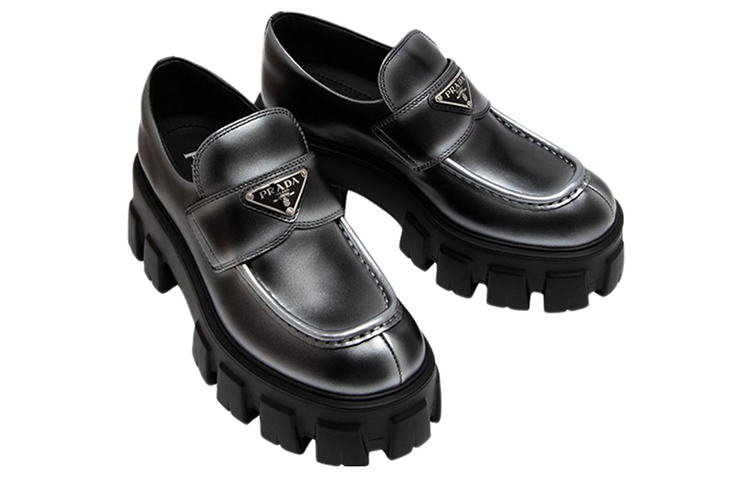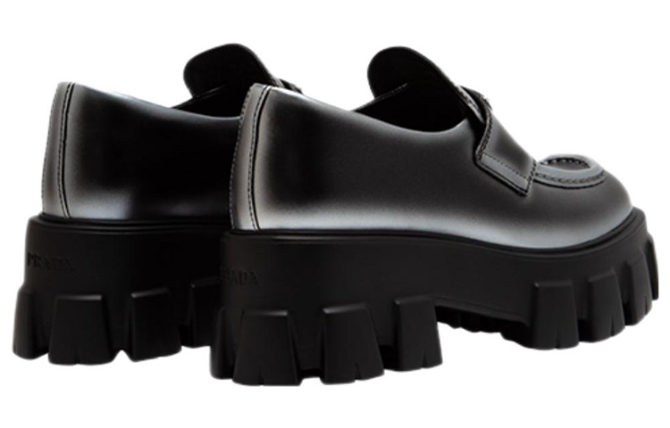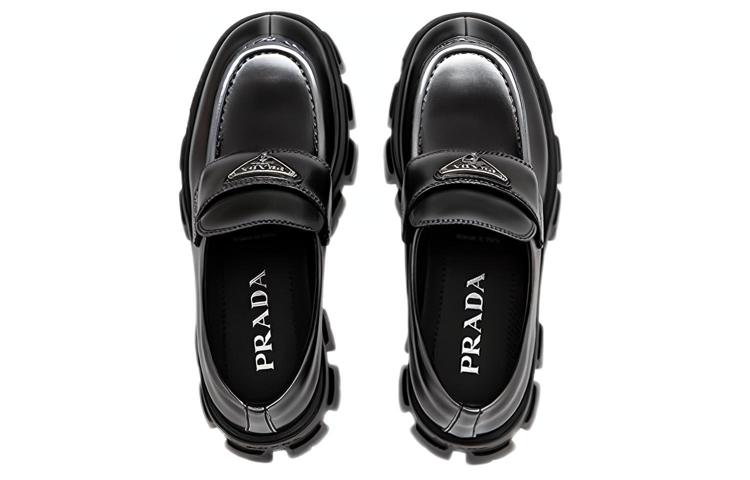 PRADA Monolith Brushed Leather Loafers "White Spray Black" Women"s