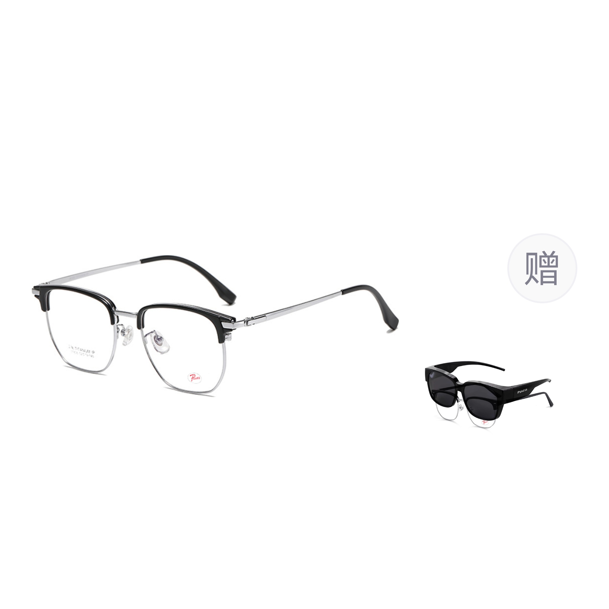 PSACSS Browline Functional Glasses Unisex Black Gold, Black Silver, Translucent Gray Silver