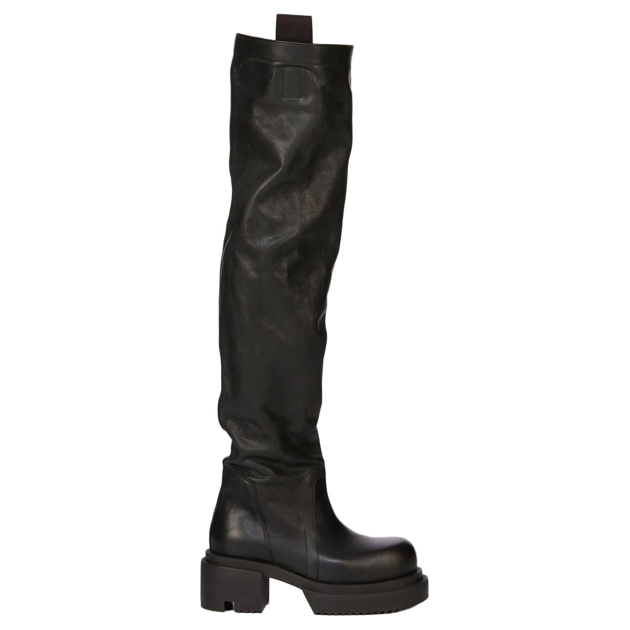 RICK OWENS/RO Calfskin Over the knee Boots Men"s Black