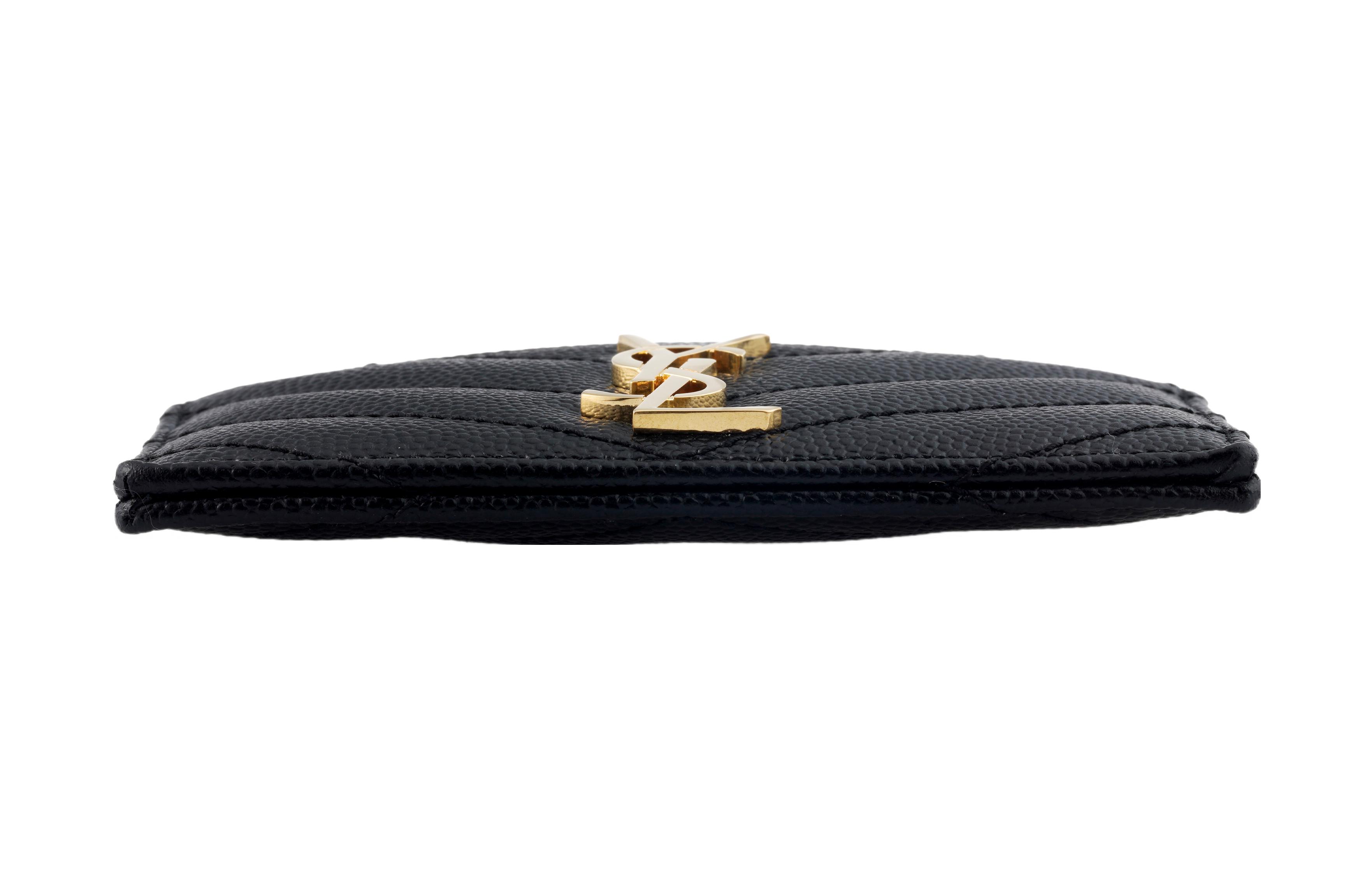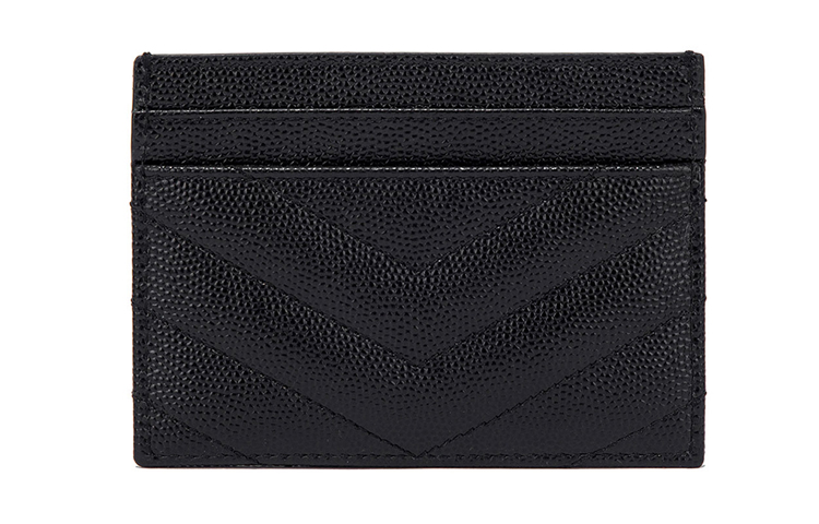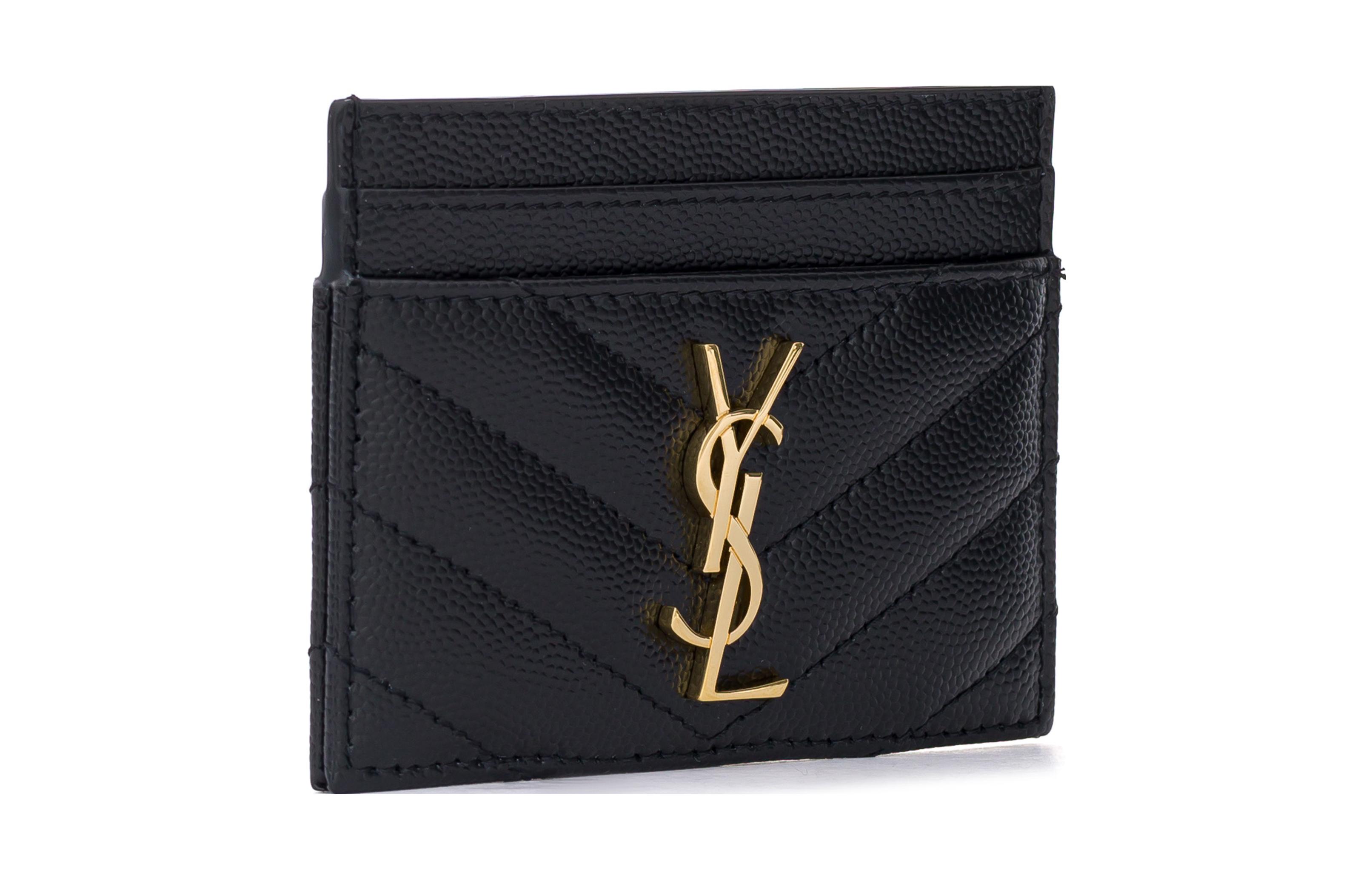 SAINT LAURENT CASSANDRE Grain Embossed Cow Leather Card Holder Card Holder Regular Women"s Black
