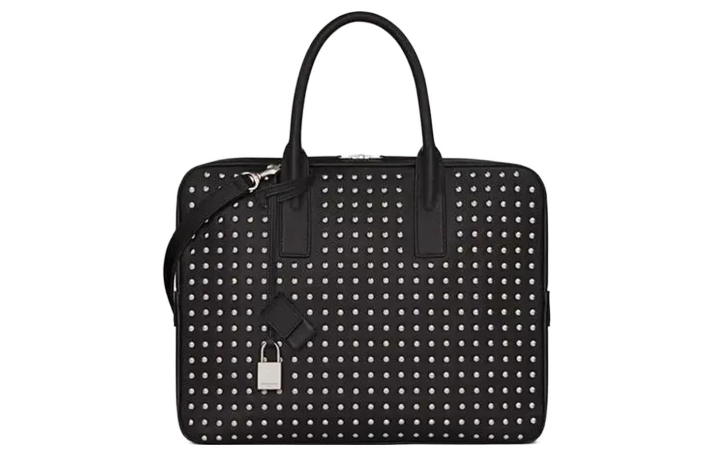 SAINT LAURENT Cow Leather Handbag Briefcase Regular Men"s Black