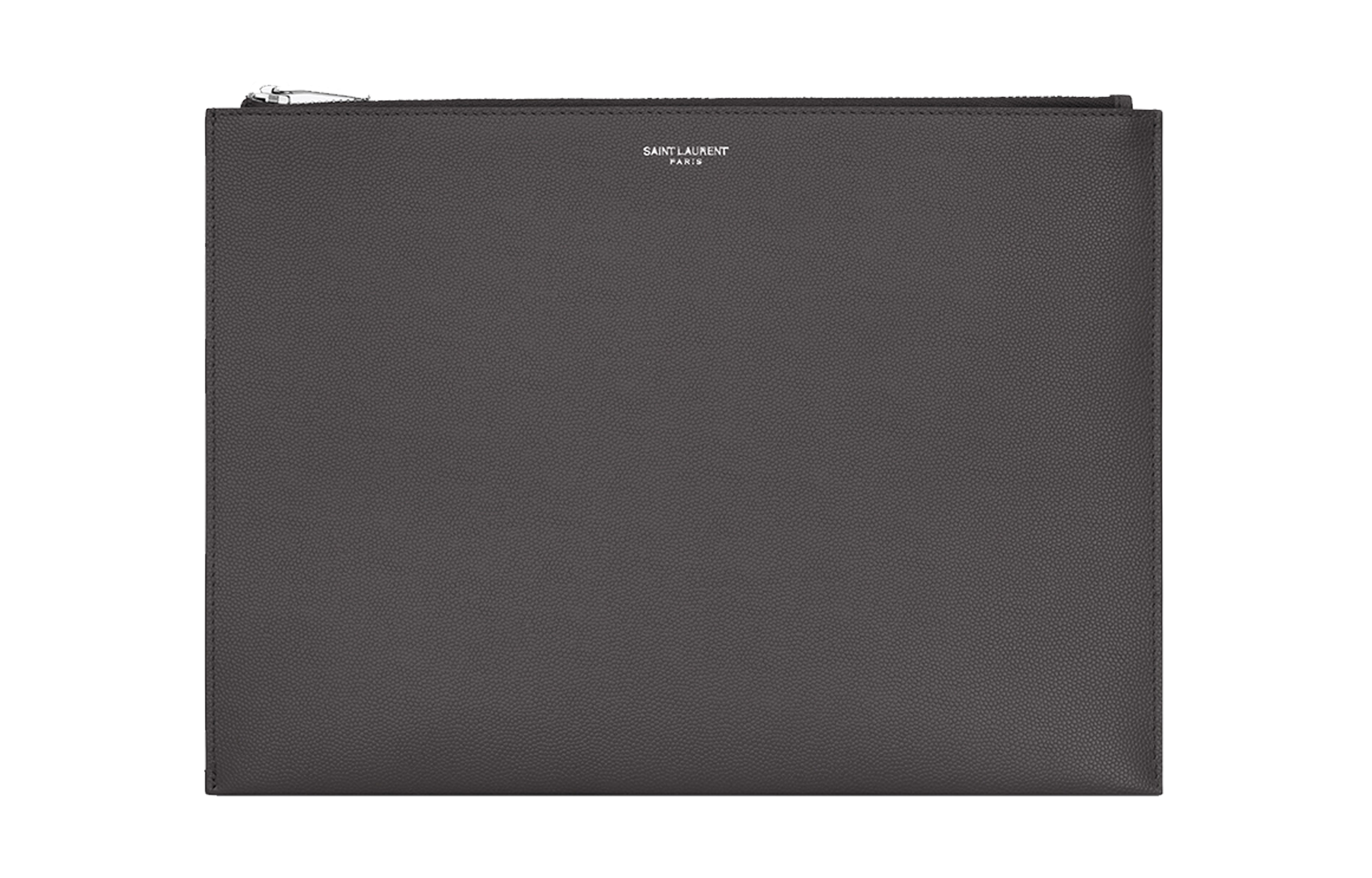 SAINT LAURENT Leather Tablet Bag Clutch Men"s Gray White