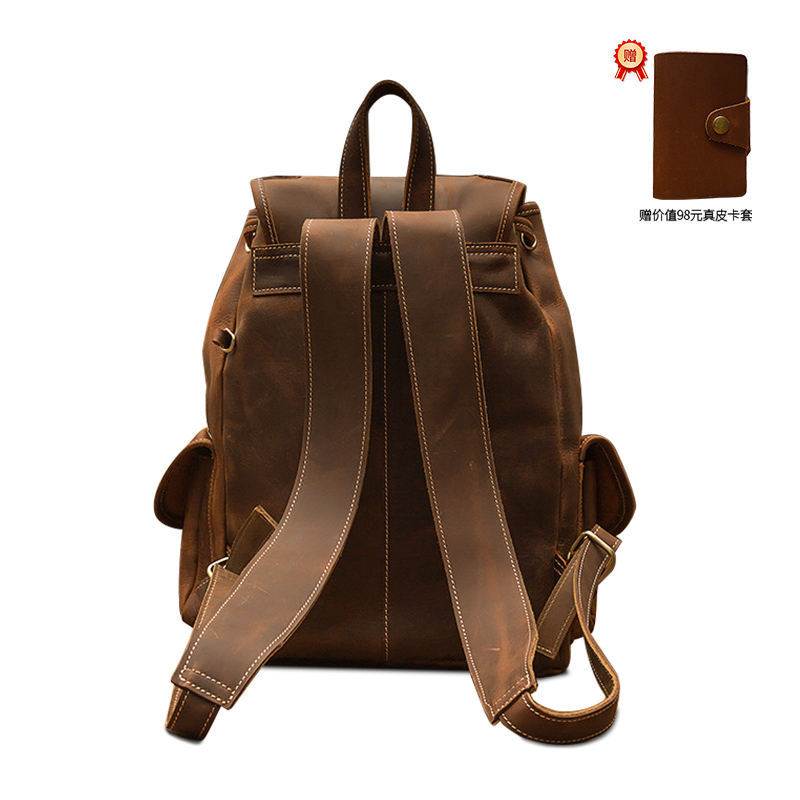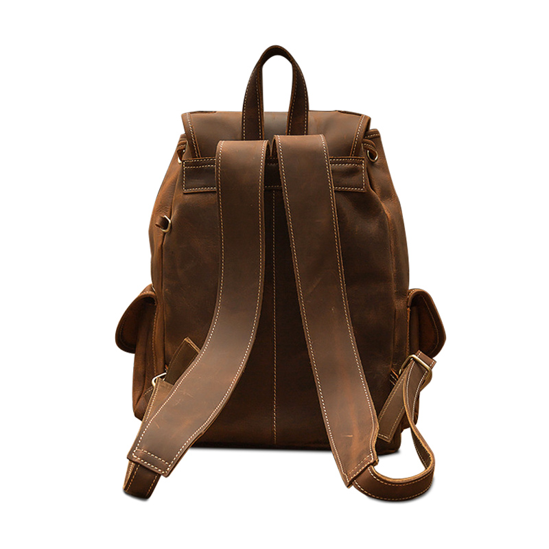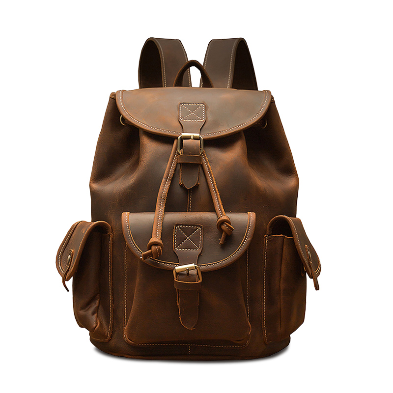 Simple&nature Top Grain Cow Leather Backpack Large Men"s Dark Brown