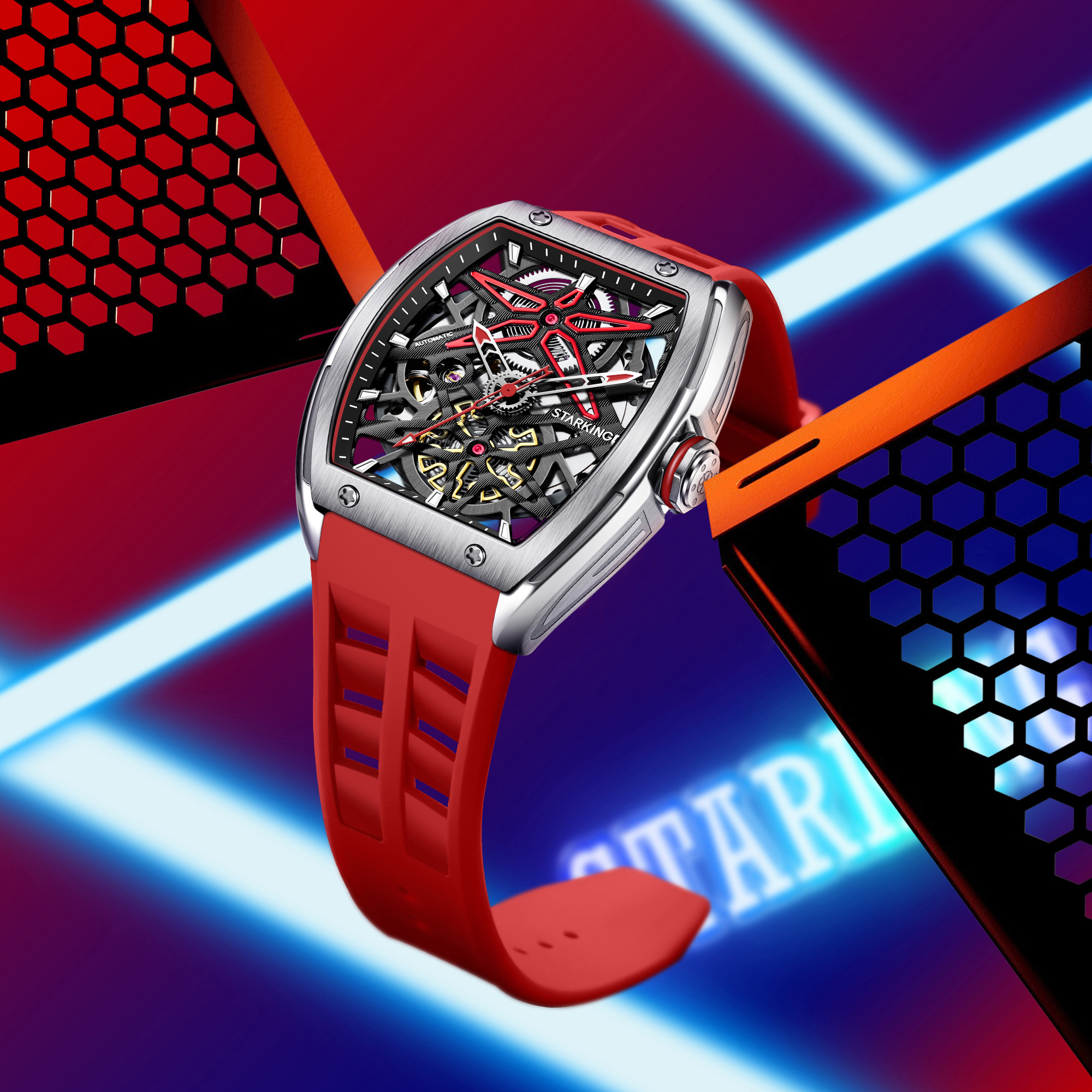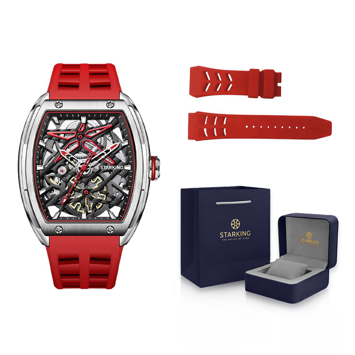 STARKING Pioneer Collection Automatic Mechanical Movement Rubber Strap Watch Men"s Watches Black Dial
