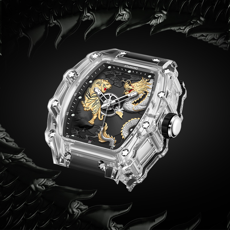 STARKING Soaring Dragon Leaping Tiger Collection Quartz Movement Silicone Strap Watch Unisex Black Dial