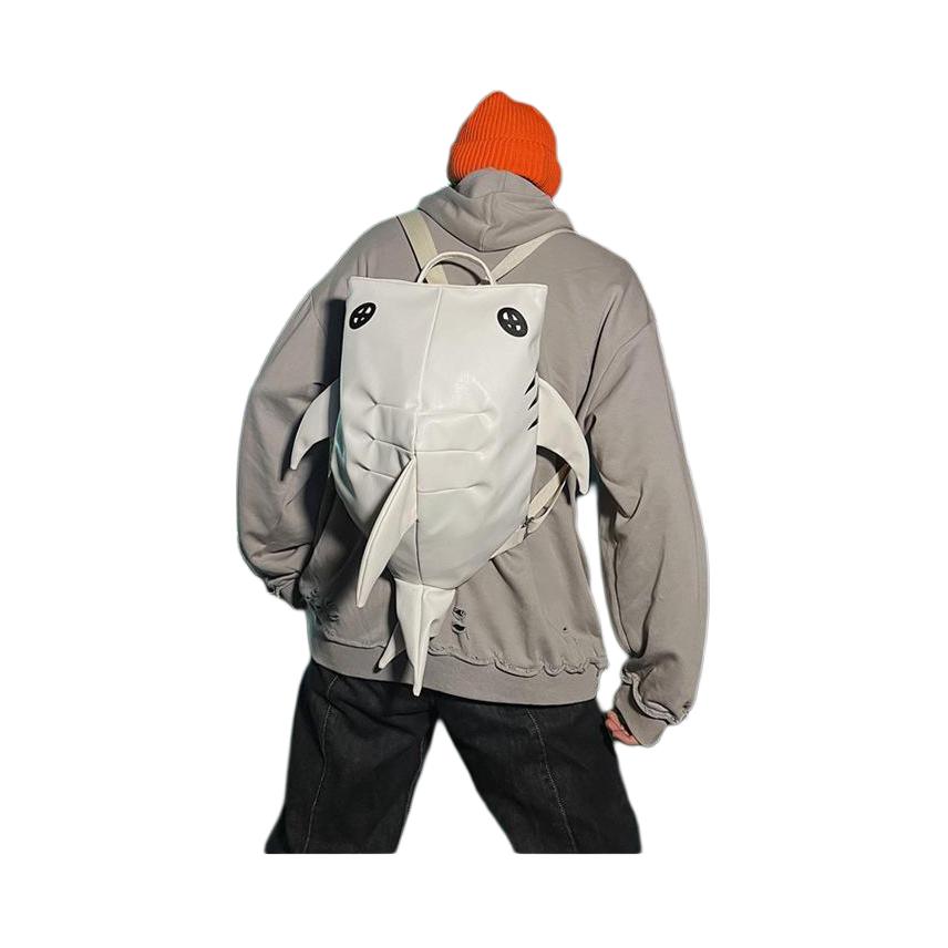 TINYAT PU Leather Backpack Large Unisex Black/White