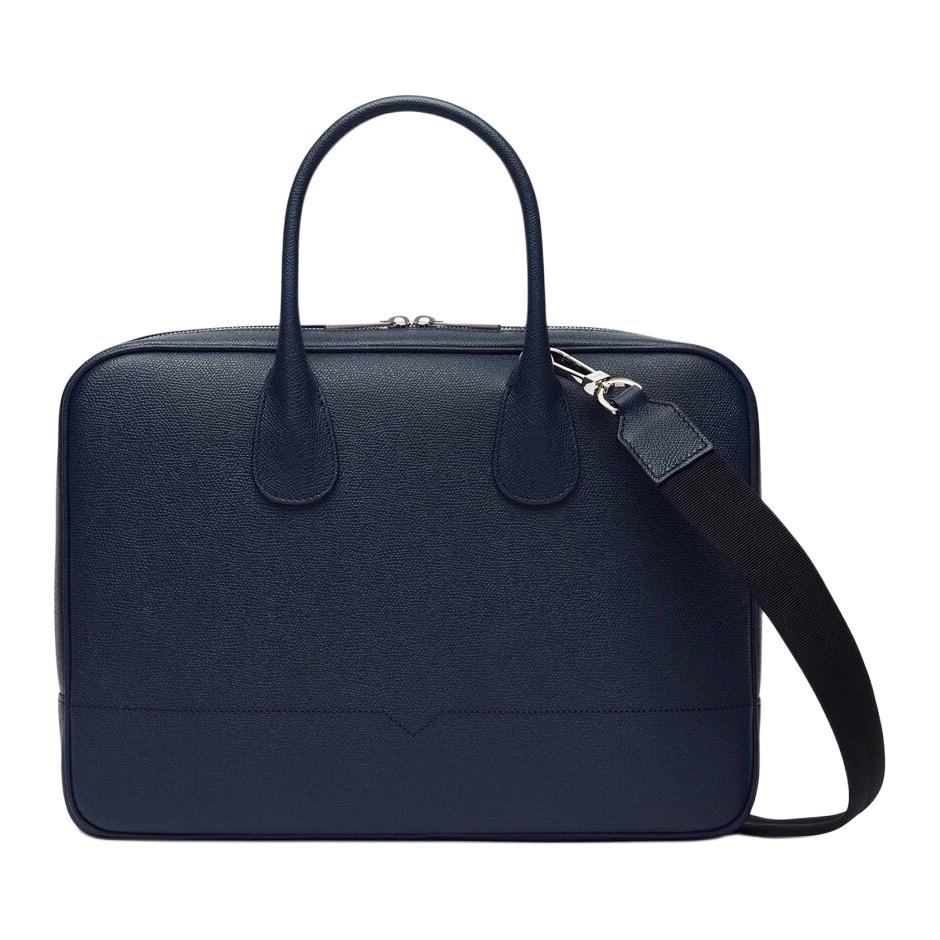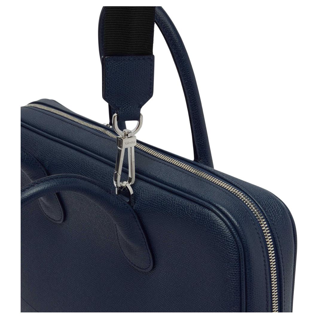 Valextra Millepunte Calfskin Laptop Bag Men"s Dark Blue