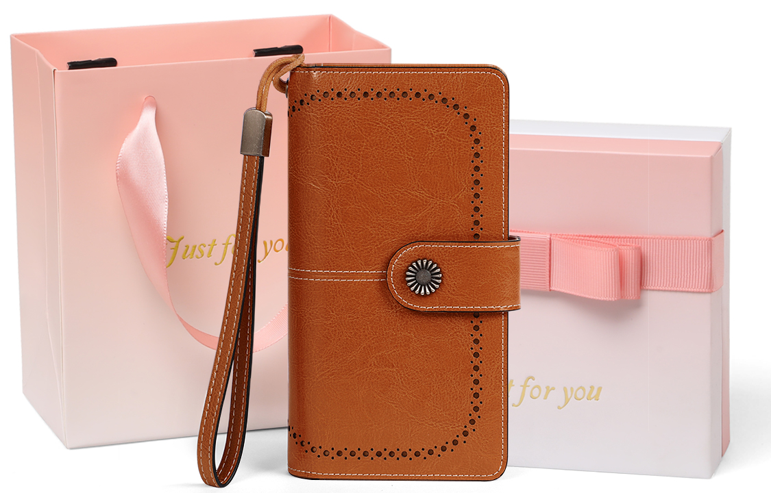 VINEY Cow Leather Wallet, Clutch, Coin Purse Small Women"s Vintage Brown