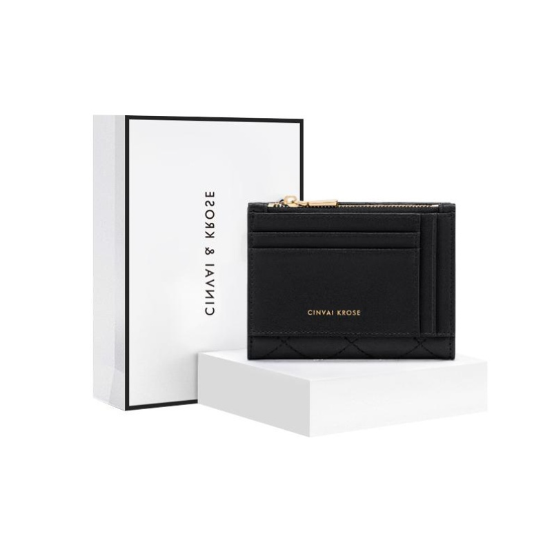 XINWAYI·KELUOSI Cow Leather Wallet Coin Purse Document Bag Wallet Card Holder Regular Women"s Black/Ecru