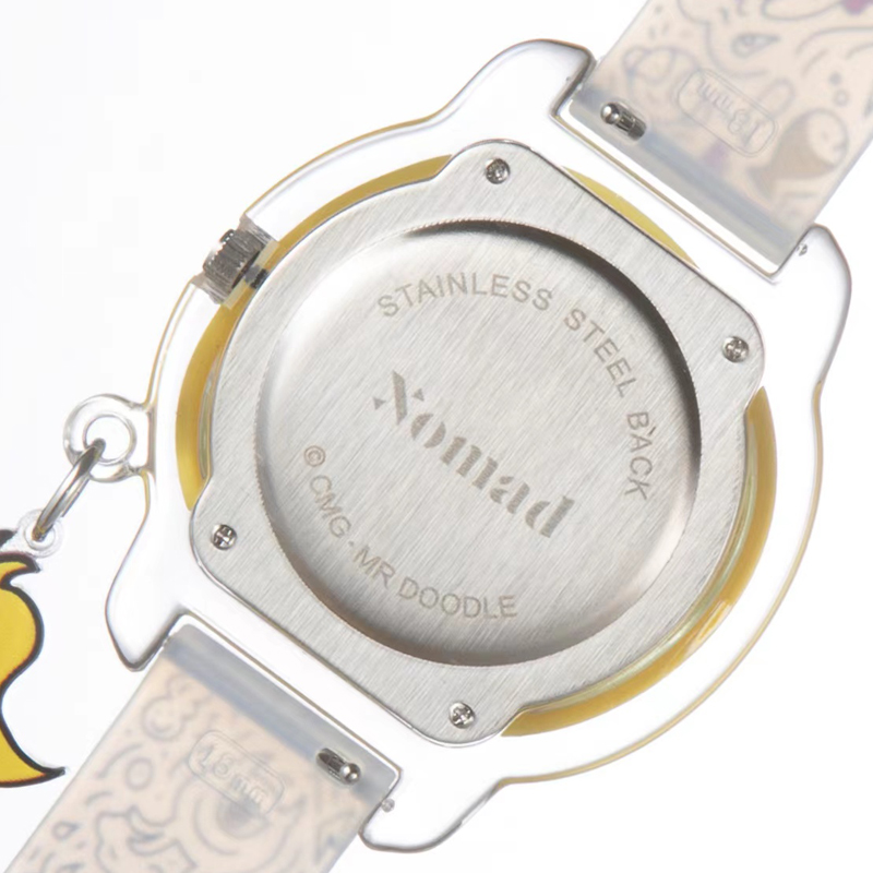 Xomad × Mr Doodle Quartz Movement Silicone Strap Watch Women"s Watch White Dial