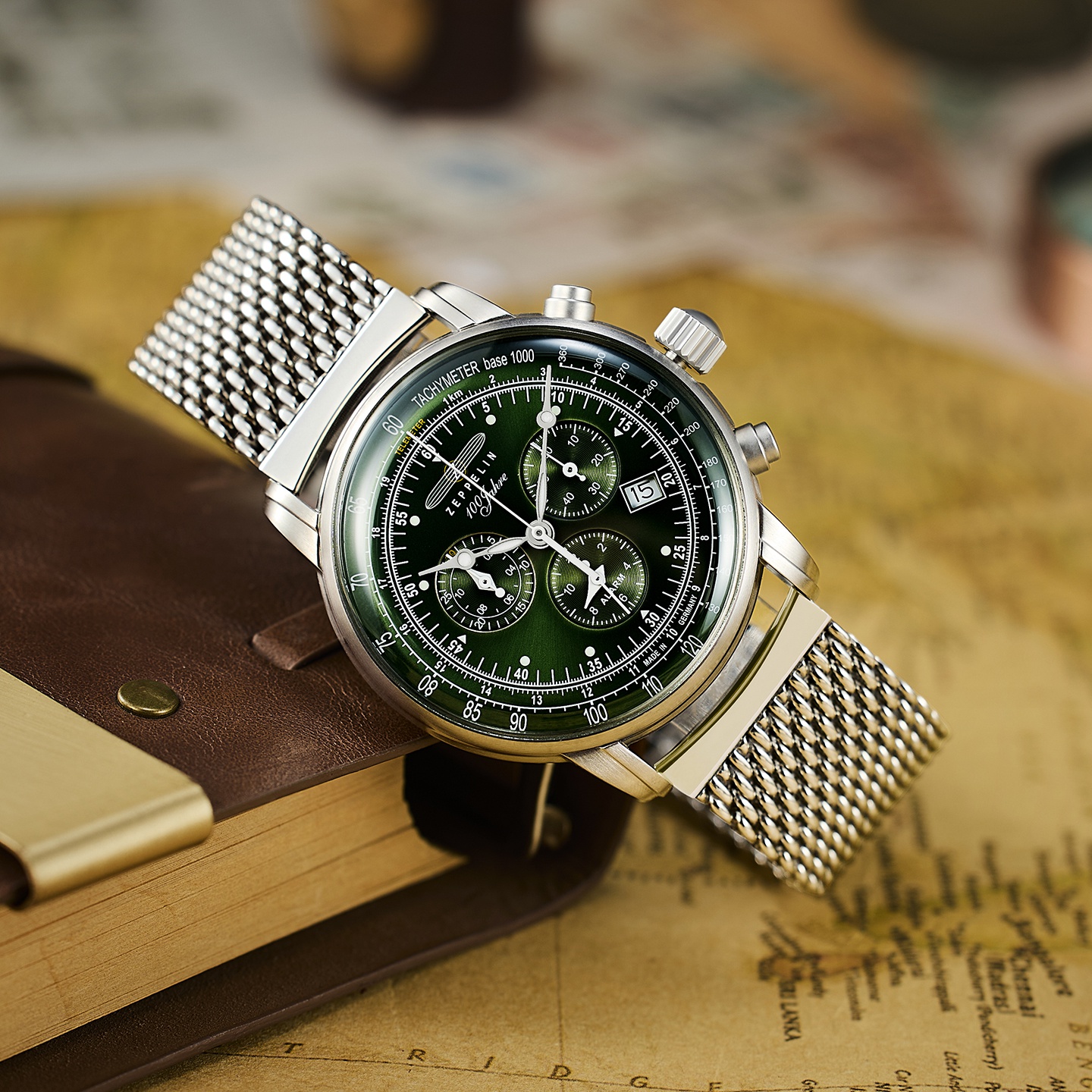 ZEPPELIN Hundred Years Collection Quartz Movement 50 meter Water Resistance Unisex Watch 42mm Green Dial